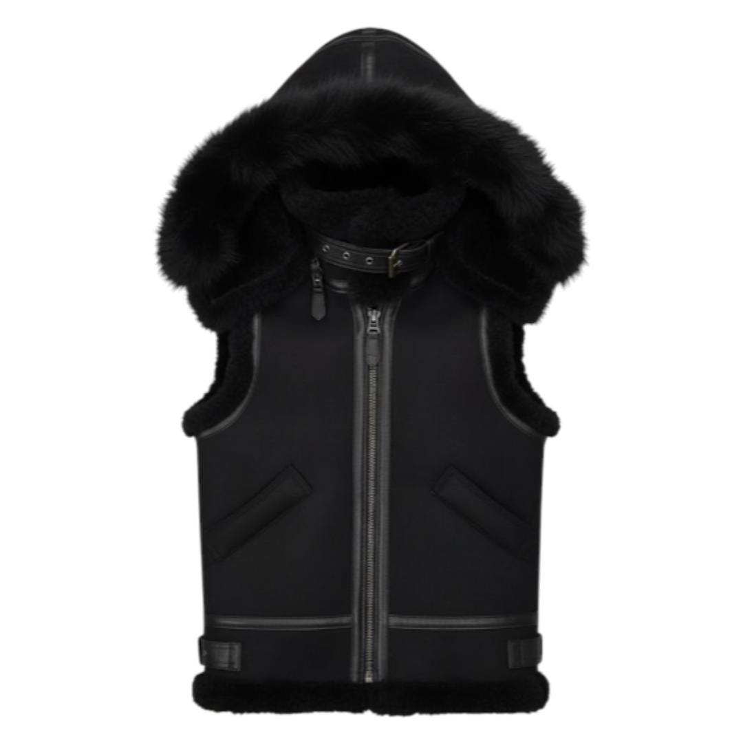 Introducing this handcrafted Men's Hooded Lambskin Leather Vest with full faux fur lining -- designe...