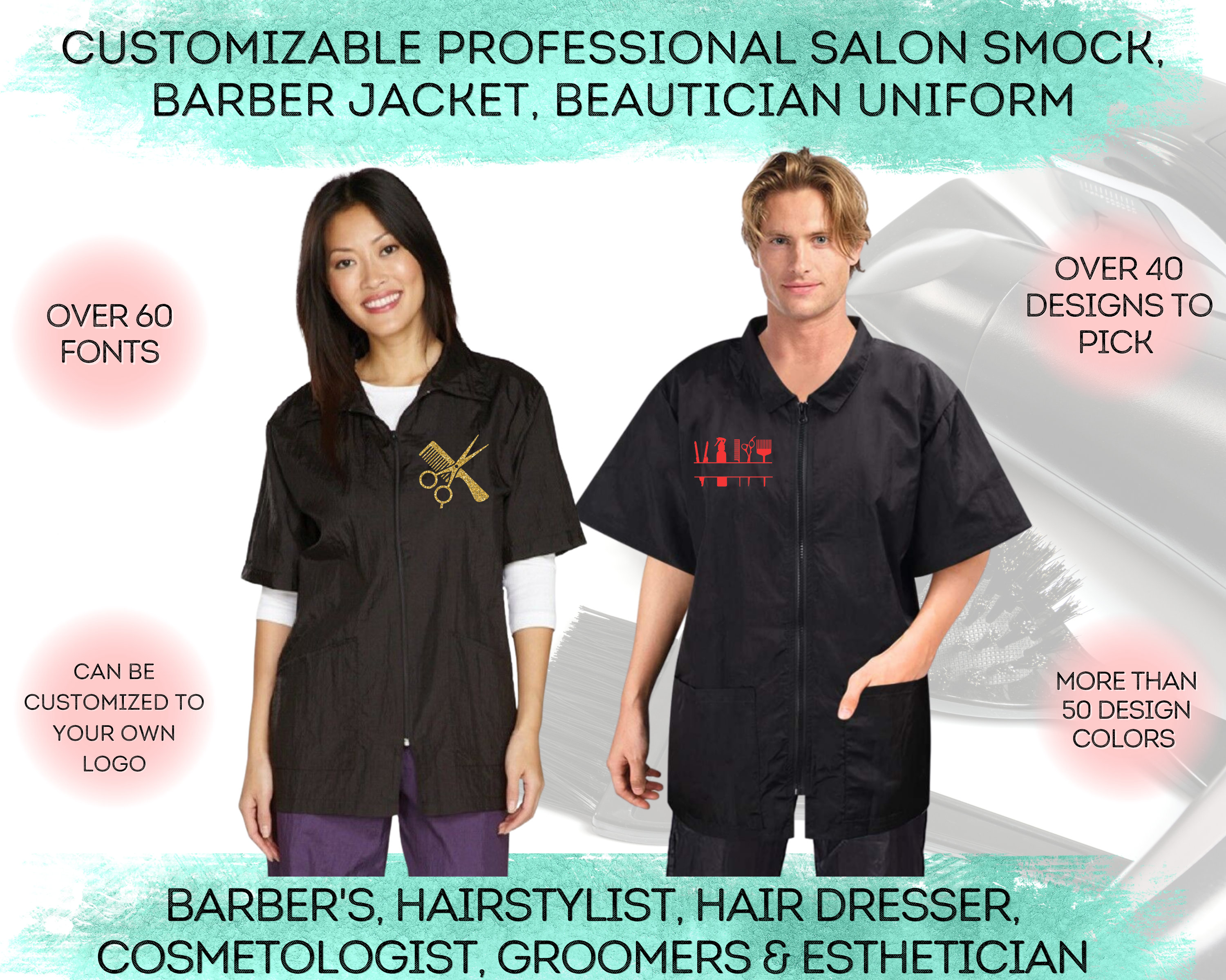 Custom Barber Smock, Barbershop Jacket, Pet Groomer Uniform, Beauti...