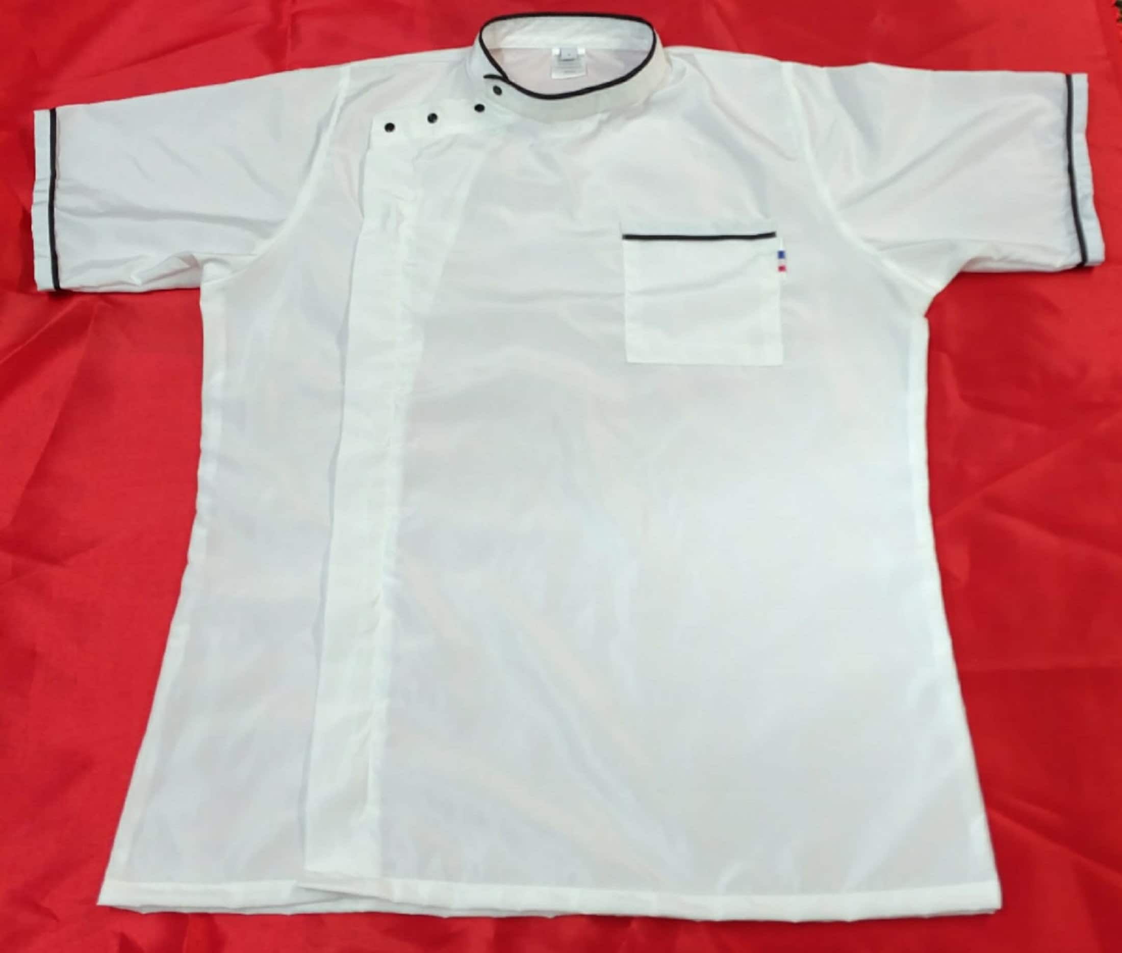 "Comfortable Short Sleeve Tunic Smock with three front patch pockets. White Buttons line the ri...