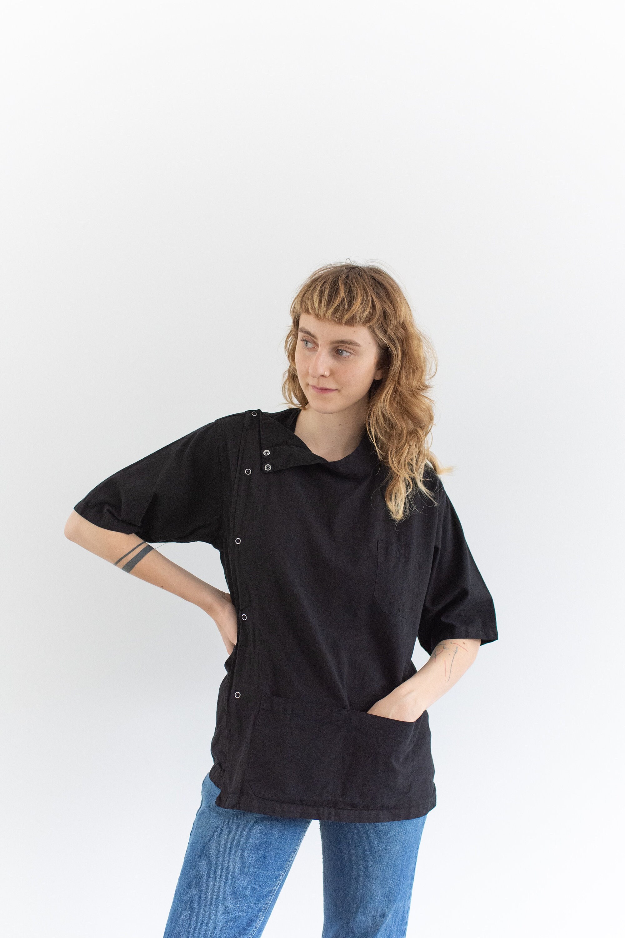 The Weston Smock in Black | Vintage Unisex Side Snap Overdye Painte...
