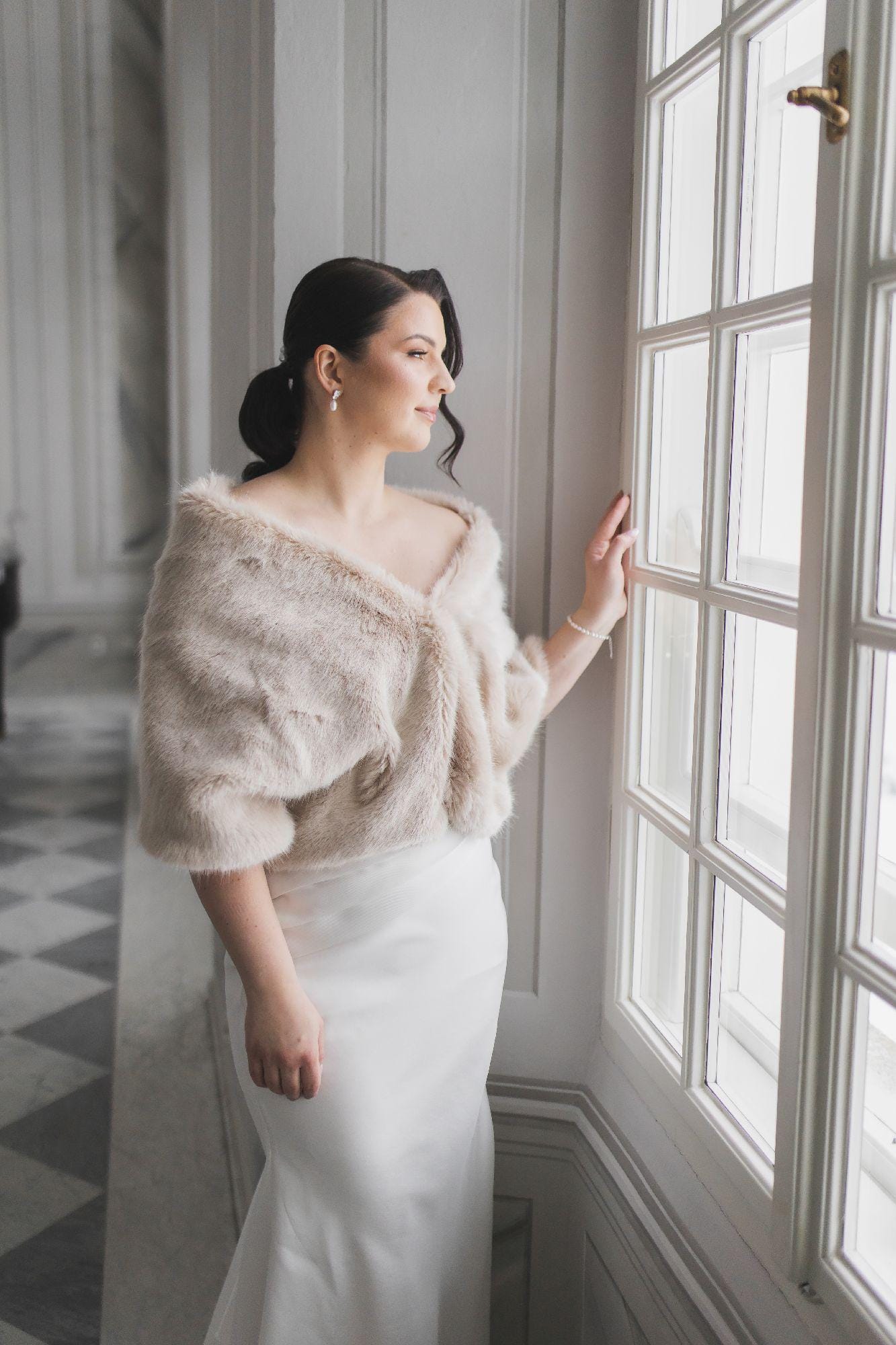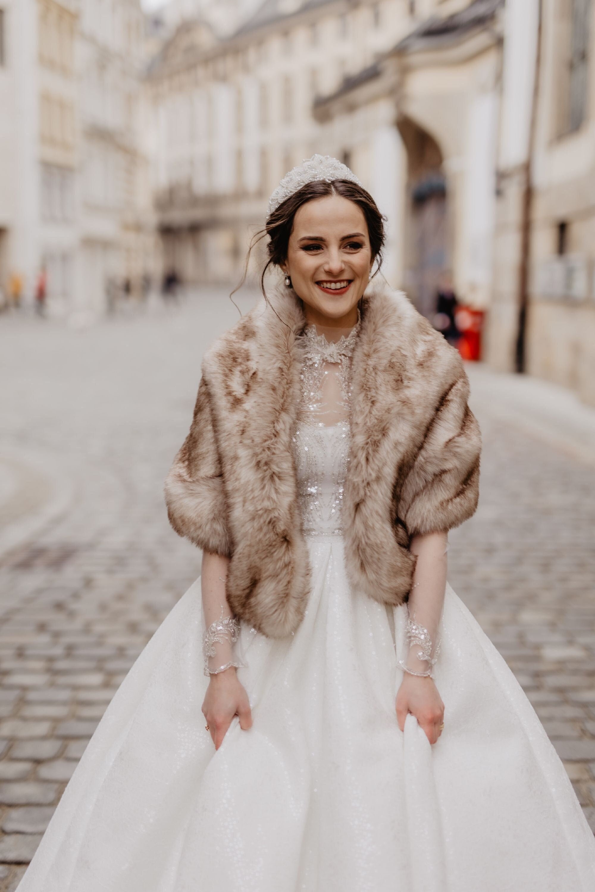 Premium faux fur bridal latte coat, latte Fur Jacket, Bridal Fur Co...