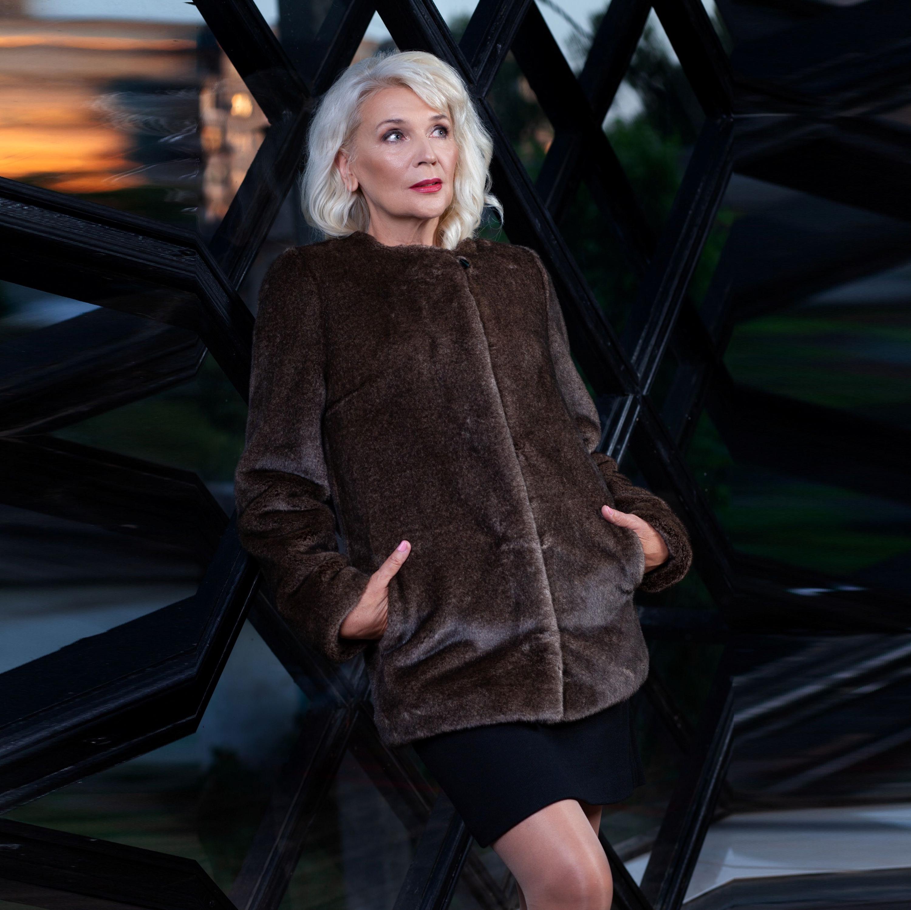 "Vintage Style Faux Fur Coat - Elegant Brown Faux Fur Coat for Mature Women. Expertly tailored ...