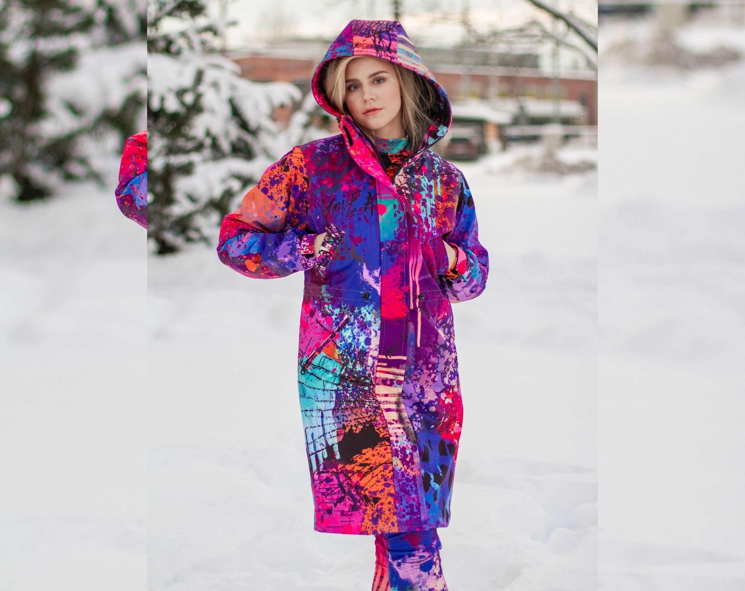 Colorful Raincoat, Winter Coat, Women Parka Softshell coat / parka with colorful print This Softshel...