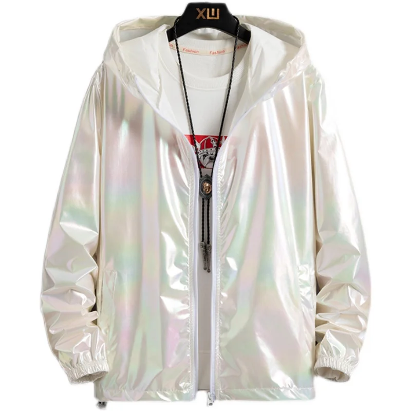 Women Basic Jackets Summer 2026 Colorful Reflective Oversize Thin Windbreaker Women Hooded Jackets C...