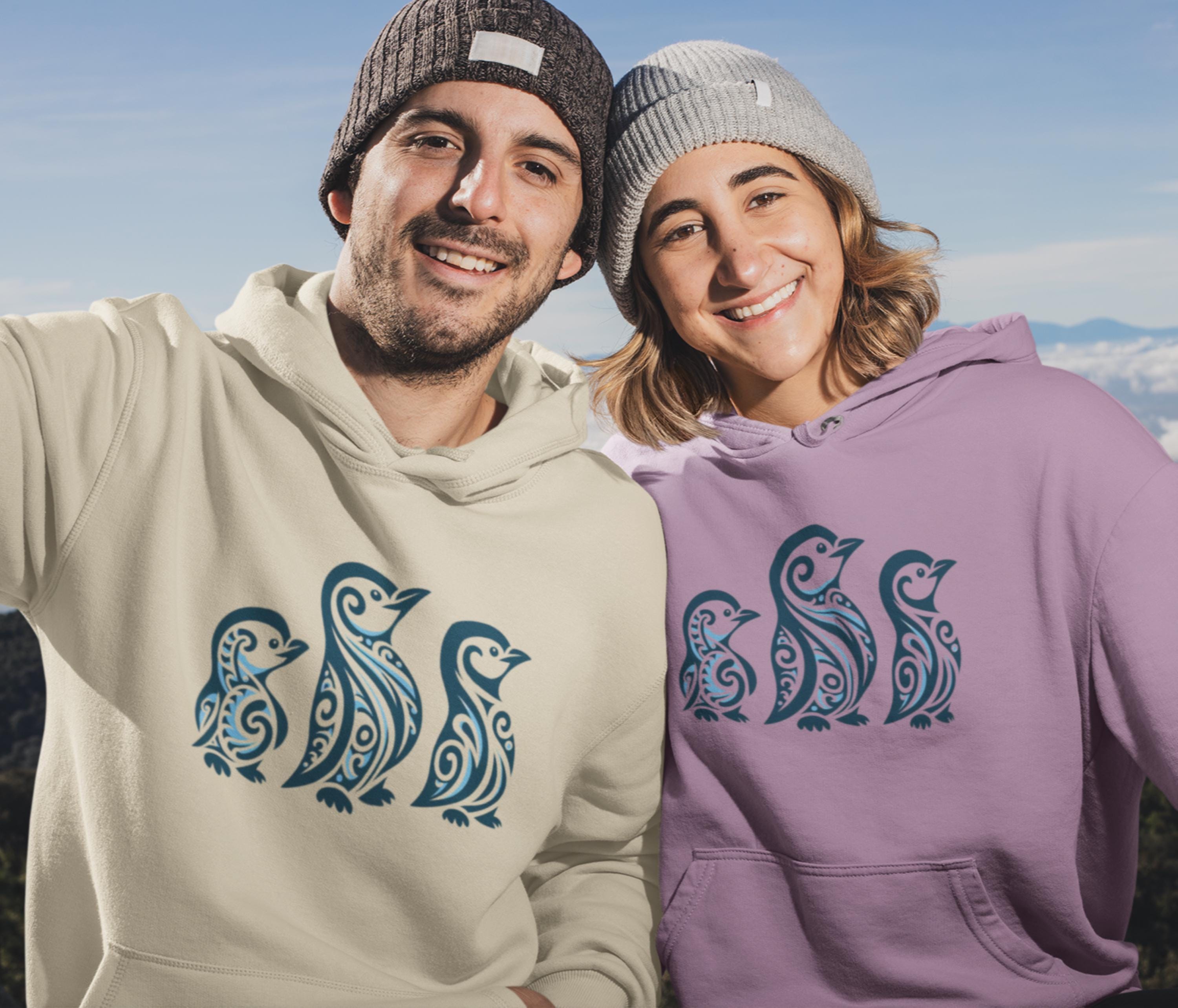 Maori Style Blue Penguins Hoodie New Zealand Stylized Penguin Pullo...