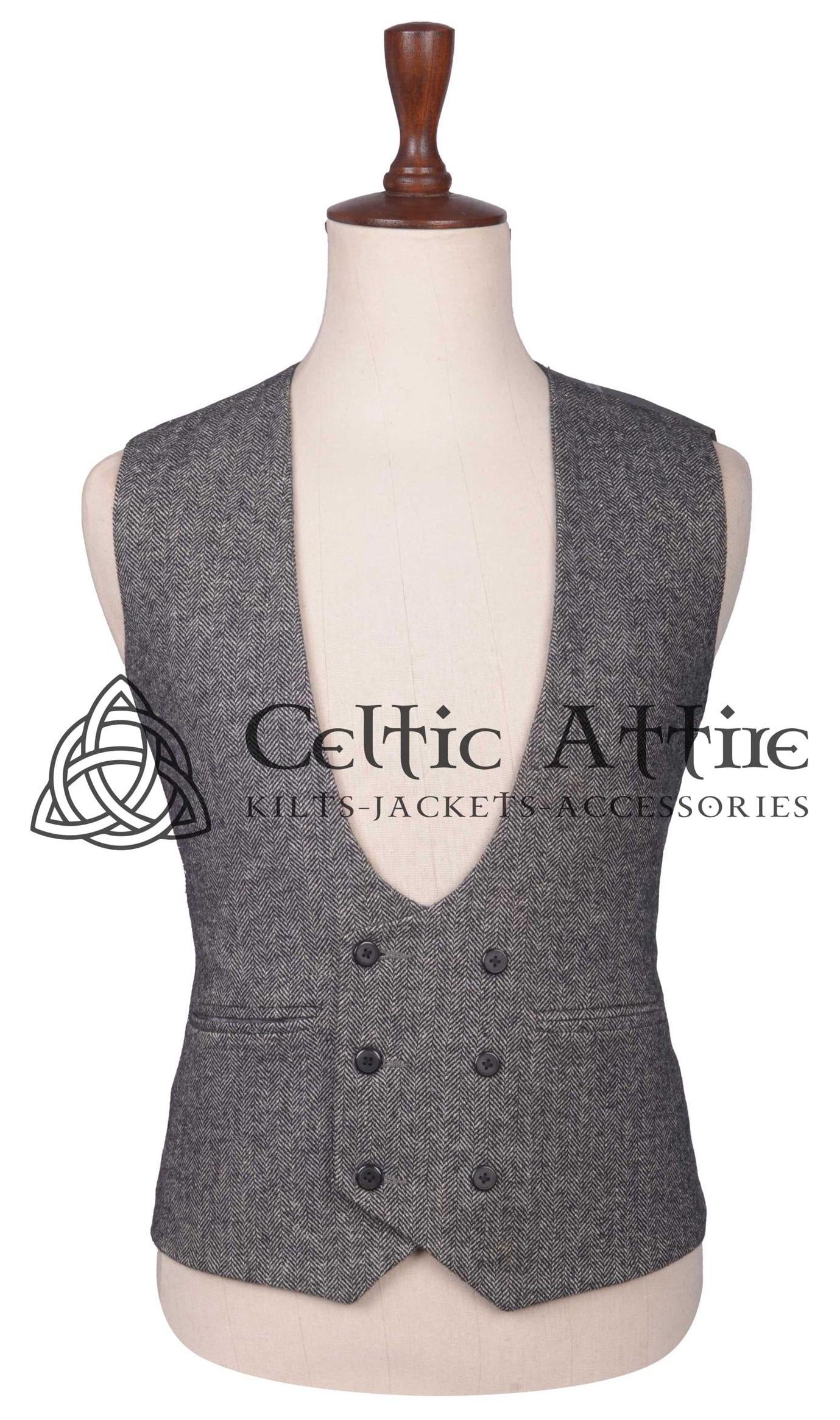 Scottish Tweed Waistcoat - Double Breasted Horse Shoe Cut Vest - 10...