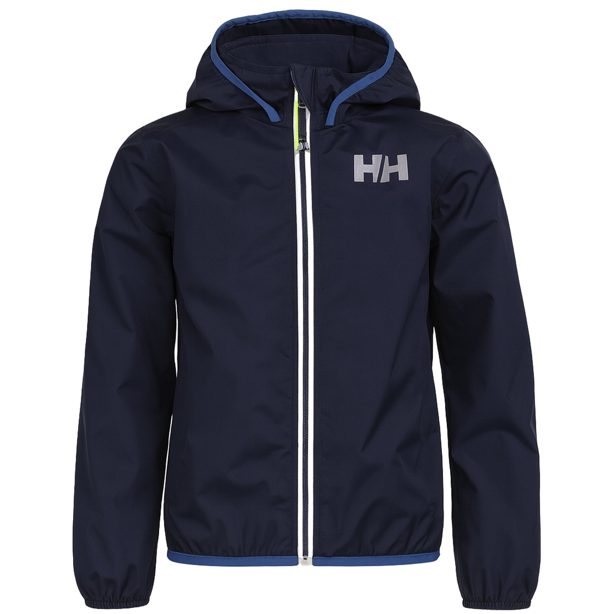 The Helly Hansen Helium Kids Navy Packable Jacket is a lightweight, travel-friendly rain shell desig...