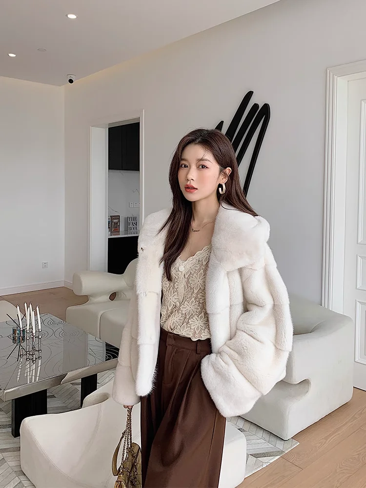 HDHOHR 2025 New Real Mink Fur Coat Women Fashion High Grade Mink Co...