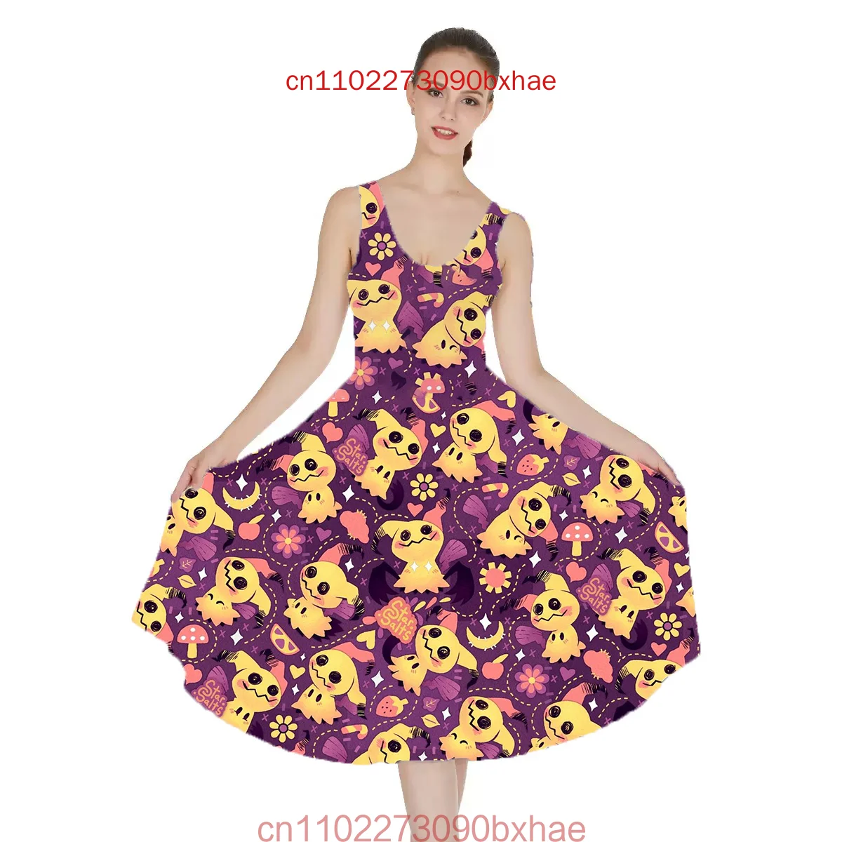 2025 New Round Neck Printed Vest Dress Pokemon Cartoon Printed New ...