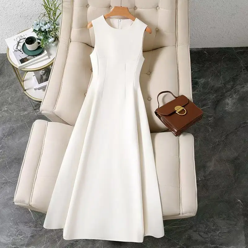 French Elegant Solid Color Sleeveless Dress Women's Summer New O-Ne...