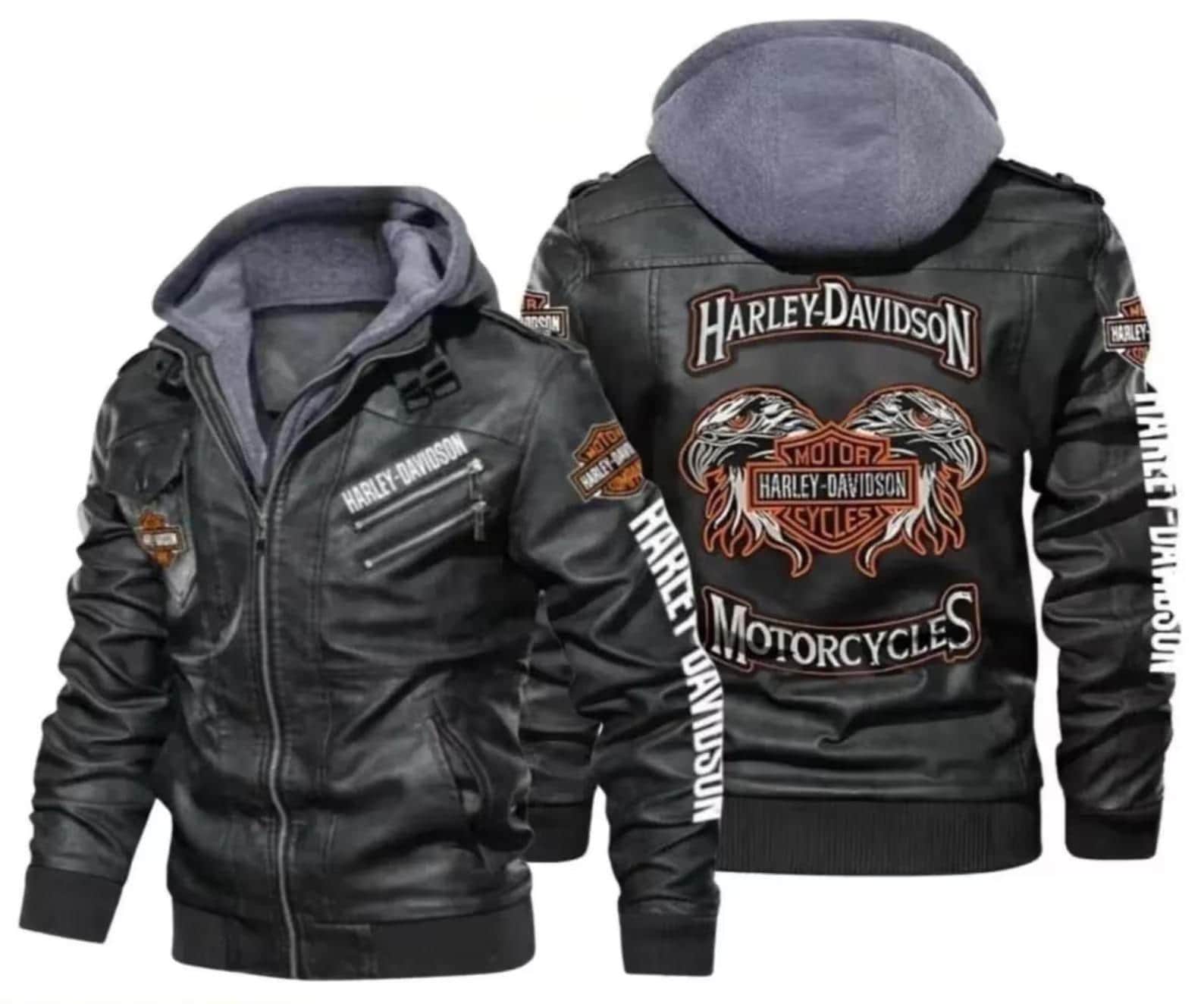 Harley Davidson Men's Hooded Motorcycle Leather Jacket - Genuine Cowhide HD Biker Jacket Embroidered...