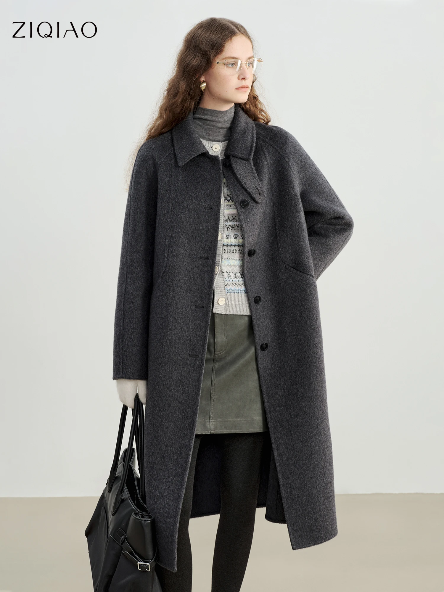 ZIQIAO Stylish Women's Petite Wool Overcoat with Suit Lapel 2025 Winter New Arrival 100% Wool Coats ...