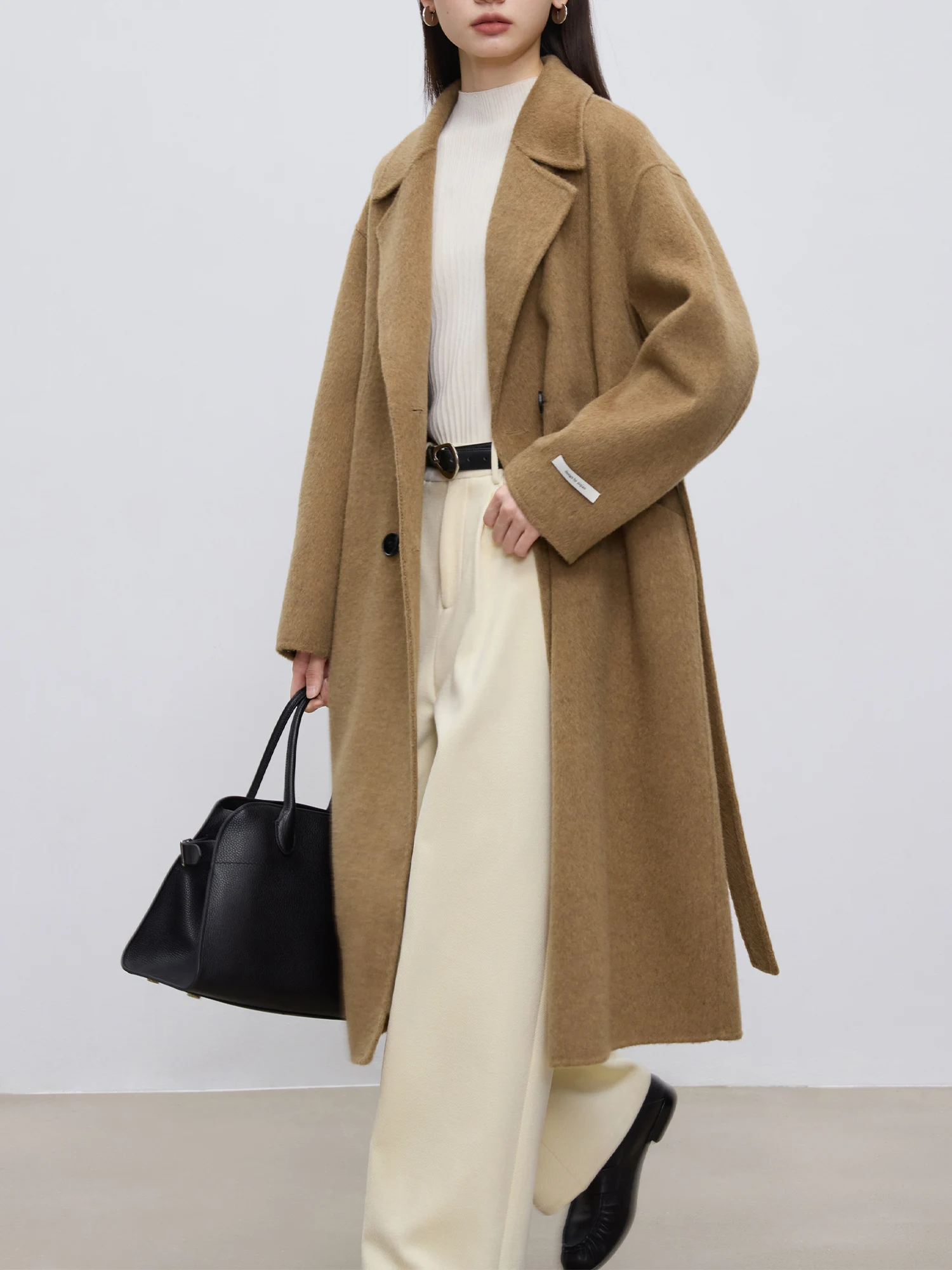 ZIQIAO Women's Petite Balmain-Inspired Camel Wool Overcoat 2025 Winter New Arrival Luxury Wool Fabri...