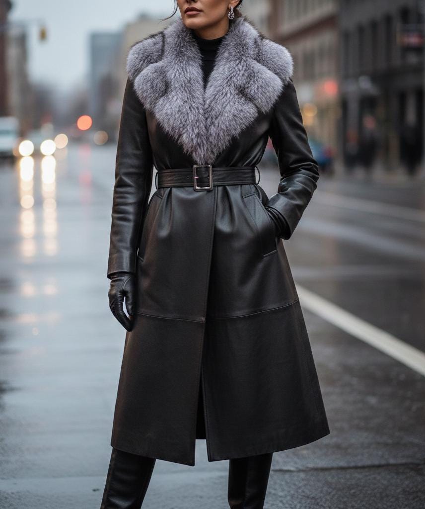 Discover timeless elegance with our Leather Fur Trench Coat, a perfect blend of vintage charm and mo...