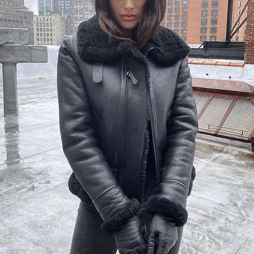 Women Black Leather Shearling Jacket,Women's Fur Lined Winter Coat,...