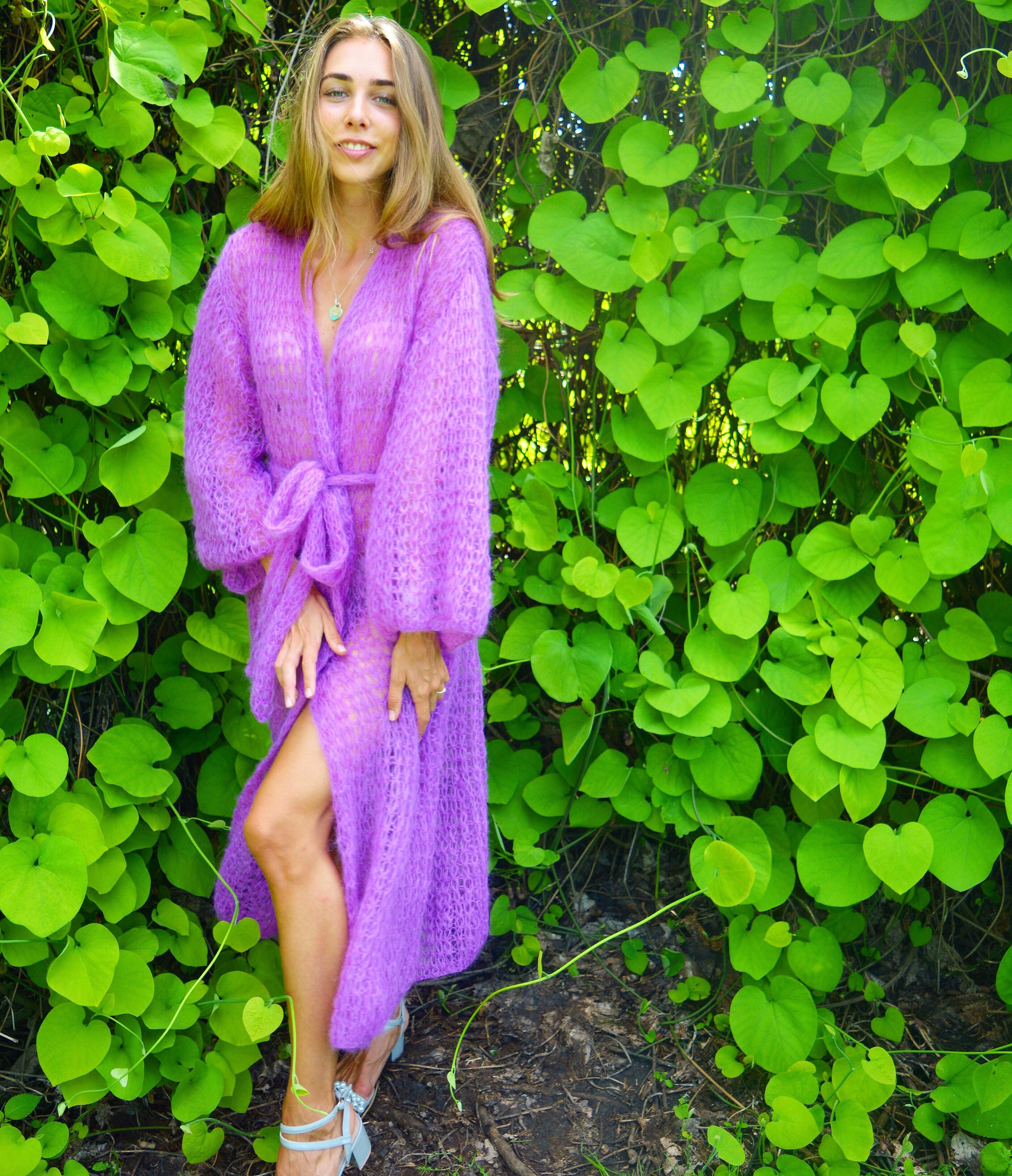 Purple mohair cardigan, Light long cardigan, Kimono knit cardigan, ...