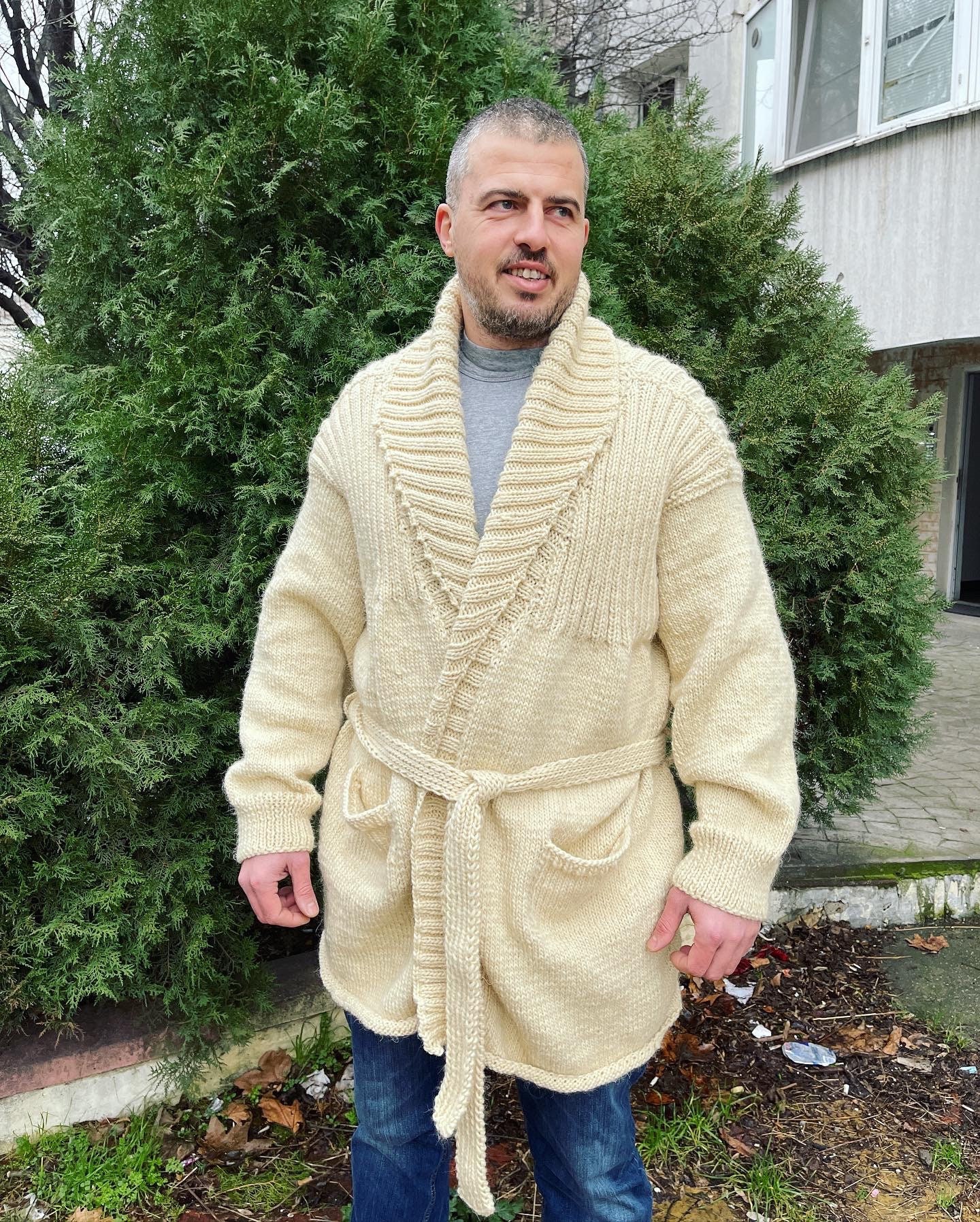 Chunky Wool Men's Cardigan, Oversized, Men's Coat, Handmade Cardiga...
