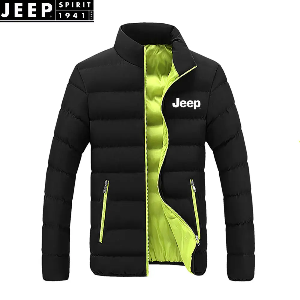 JEEP brand men's lightweight and warm cotton-padded jacket, short stand-up collar casual ultra-light...
