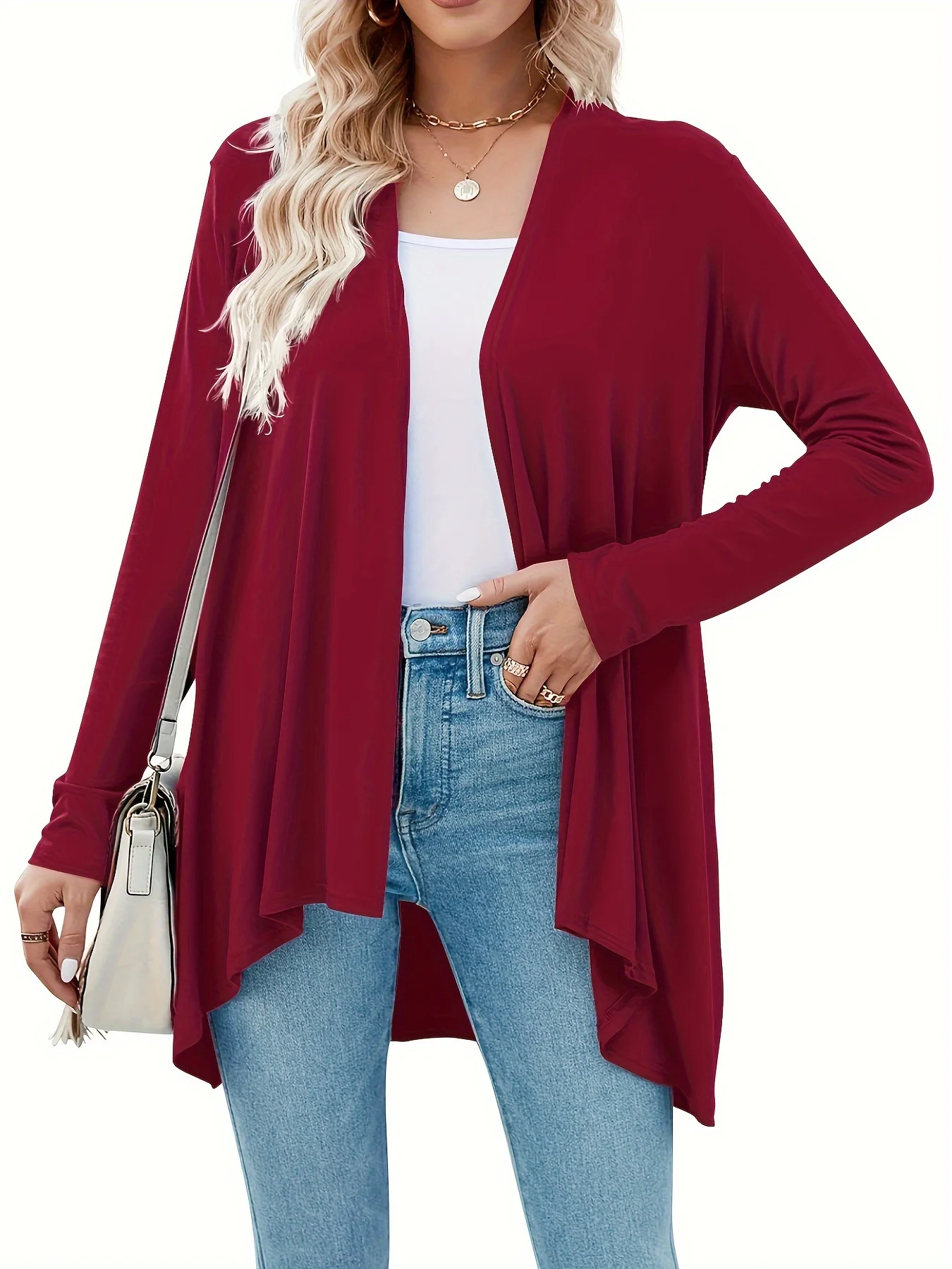 Plus Size Casual Cardigan Women's Plus-Size Solid Color Long Sleeve...