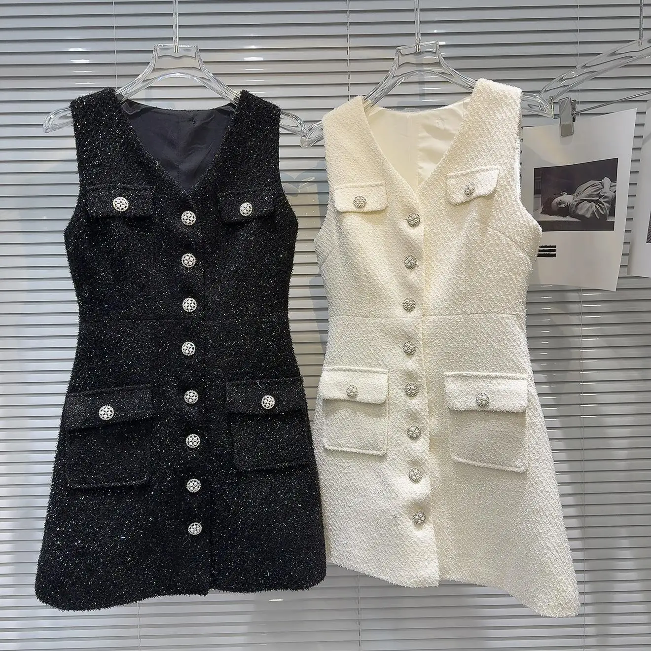 Spring 2026 Elegant Lady Diamond Flower Buckle Thick Tweed Waist Cinching Vest Dress Skirt Dress Fre...