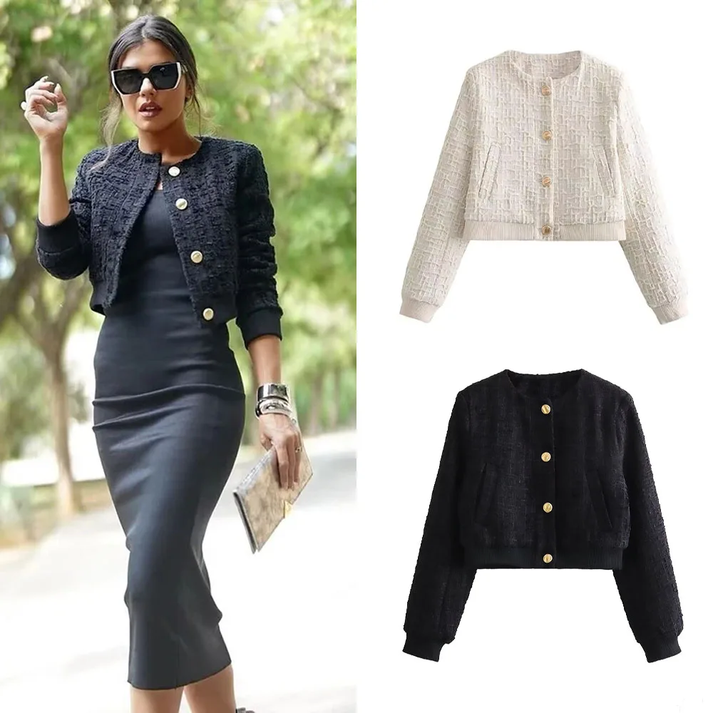 Early Autumn 2024 Elegant Luxury Women Tweed Coat Long Sleeve Single Breast Loose Bomber Jacket Fema...