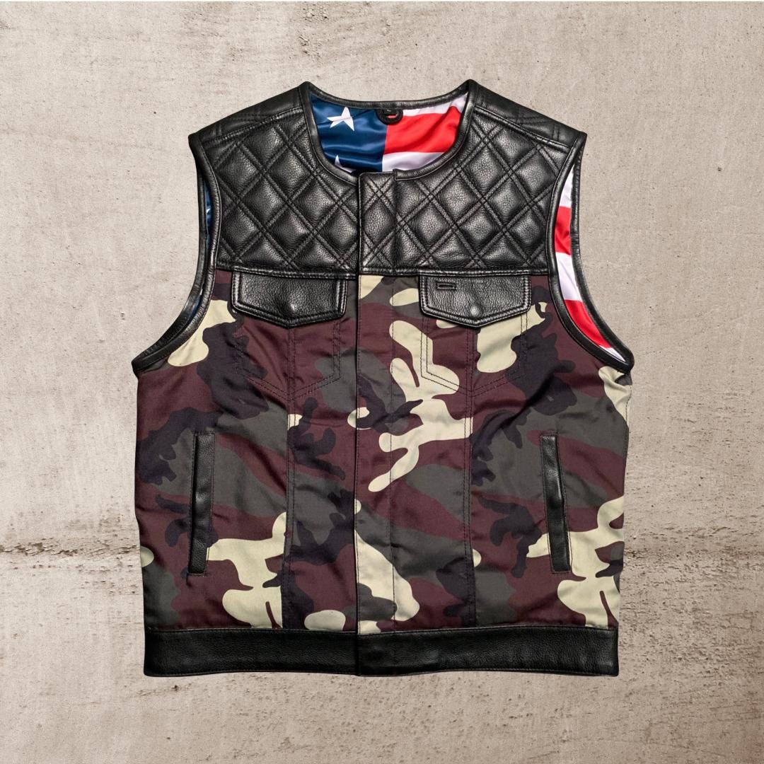 Leather Club Vest Biker Leather SOA Vest Camo Leather Motorcycle De...