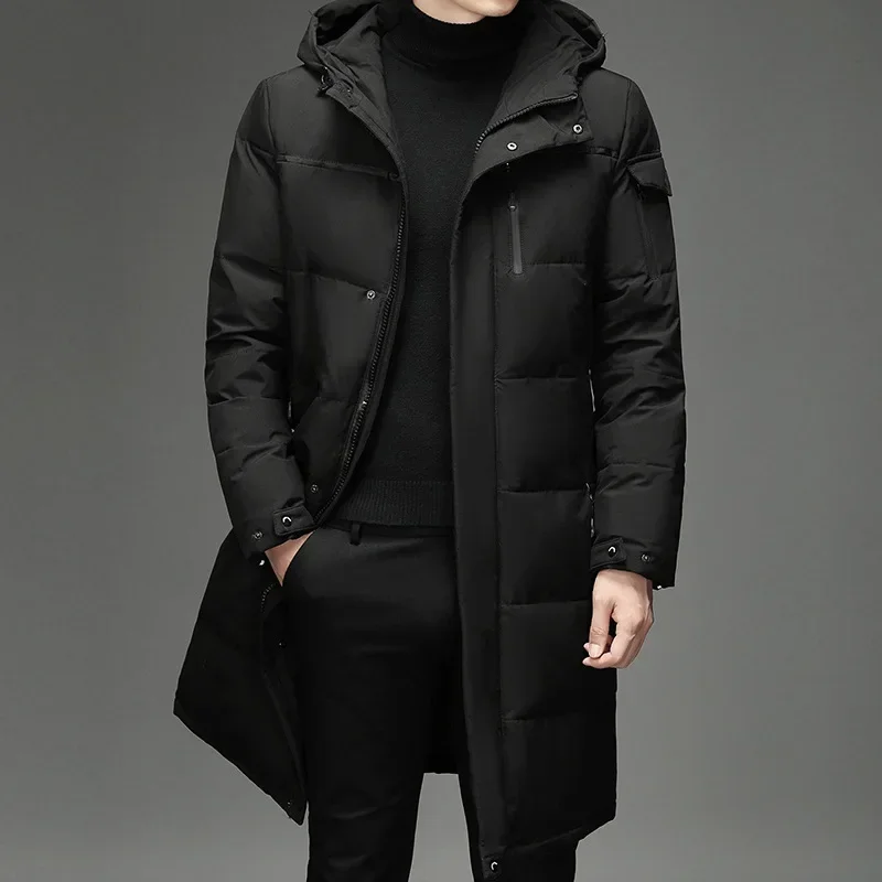Luxury Brand Long Down Jacket Men's Winter Casual Thick Flip Collar White Duck Down Warm Parka Busin...