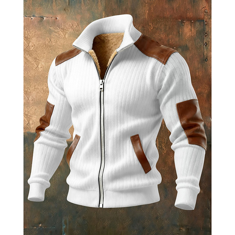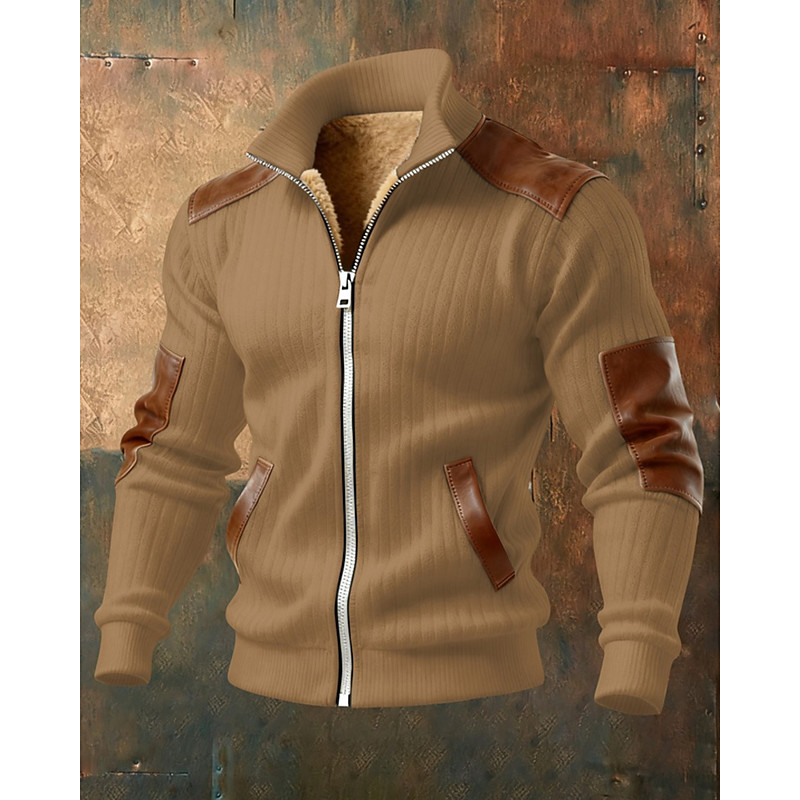 Men's Fleece Jacket Formal Home Thermal Warm Pocket Plain Fall Soli...