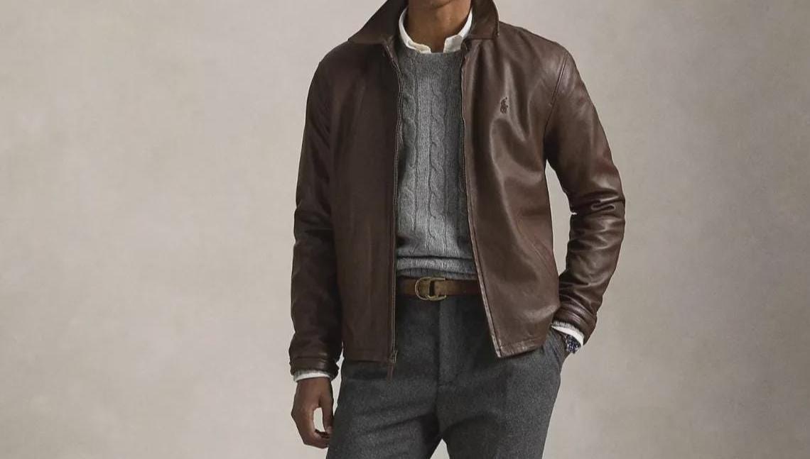 Polo Ralph Lauren Leather Bomber Jacket, Men's Brown Ralph Lauren M...