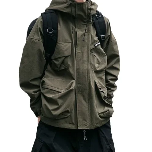 Spring Men Waterproof Outdoor Jackets Man Detachable Hat Hiking Fish Jackets Mens Multi Pocket Jogge...