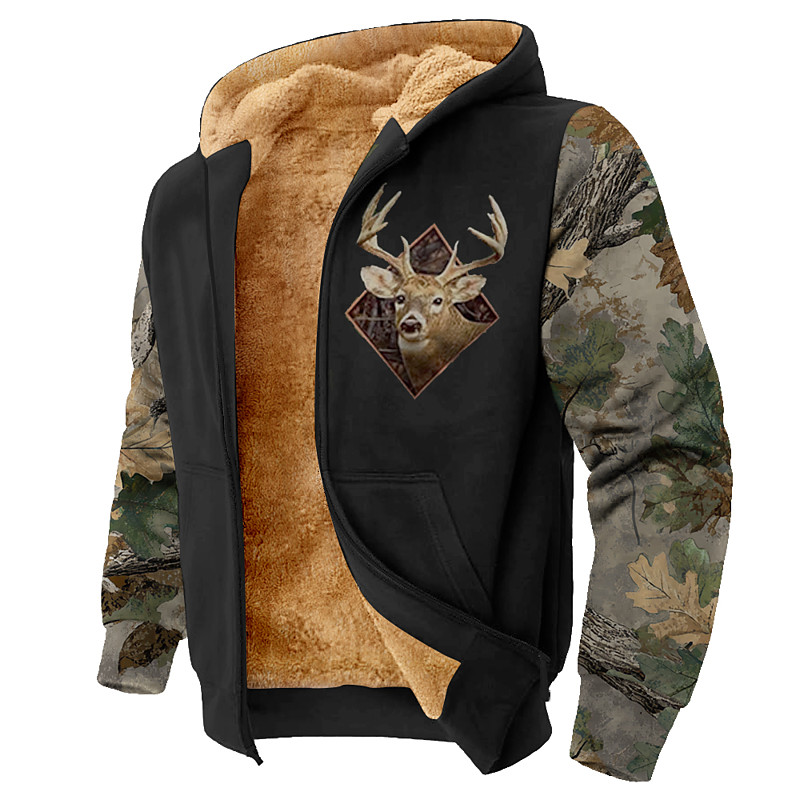 Men's Camouflage Deer Fleece Hoodie Jacket Sweatshirt Classic Milit...