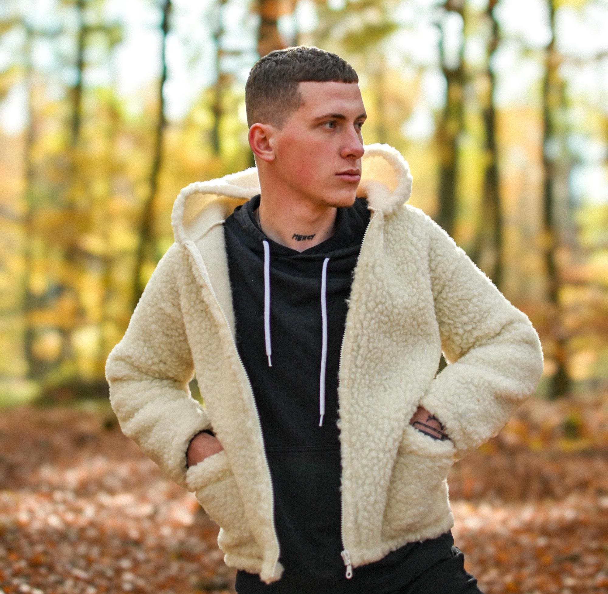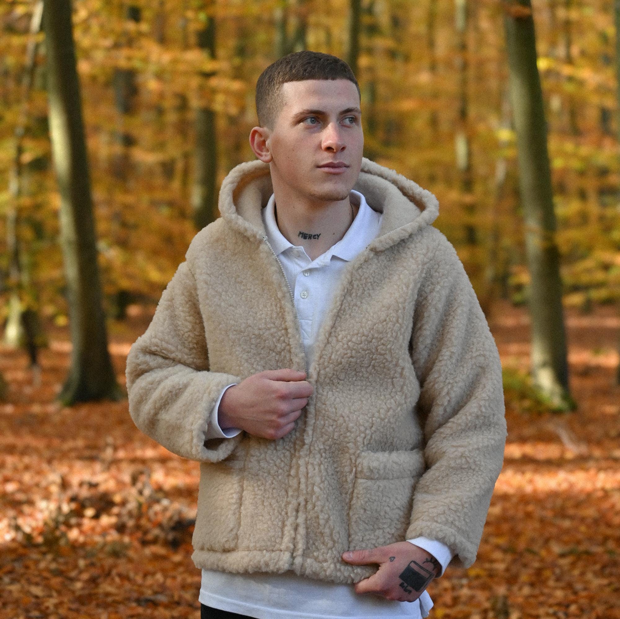 Men's wool jacket with hood 100% lambswool merino wool jacket sheep...