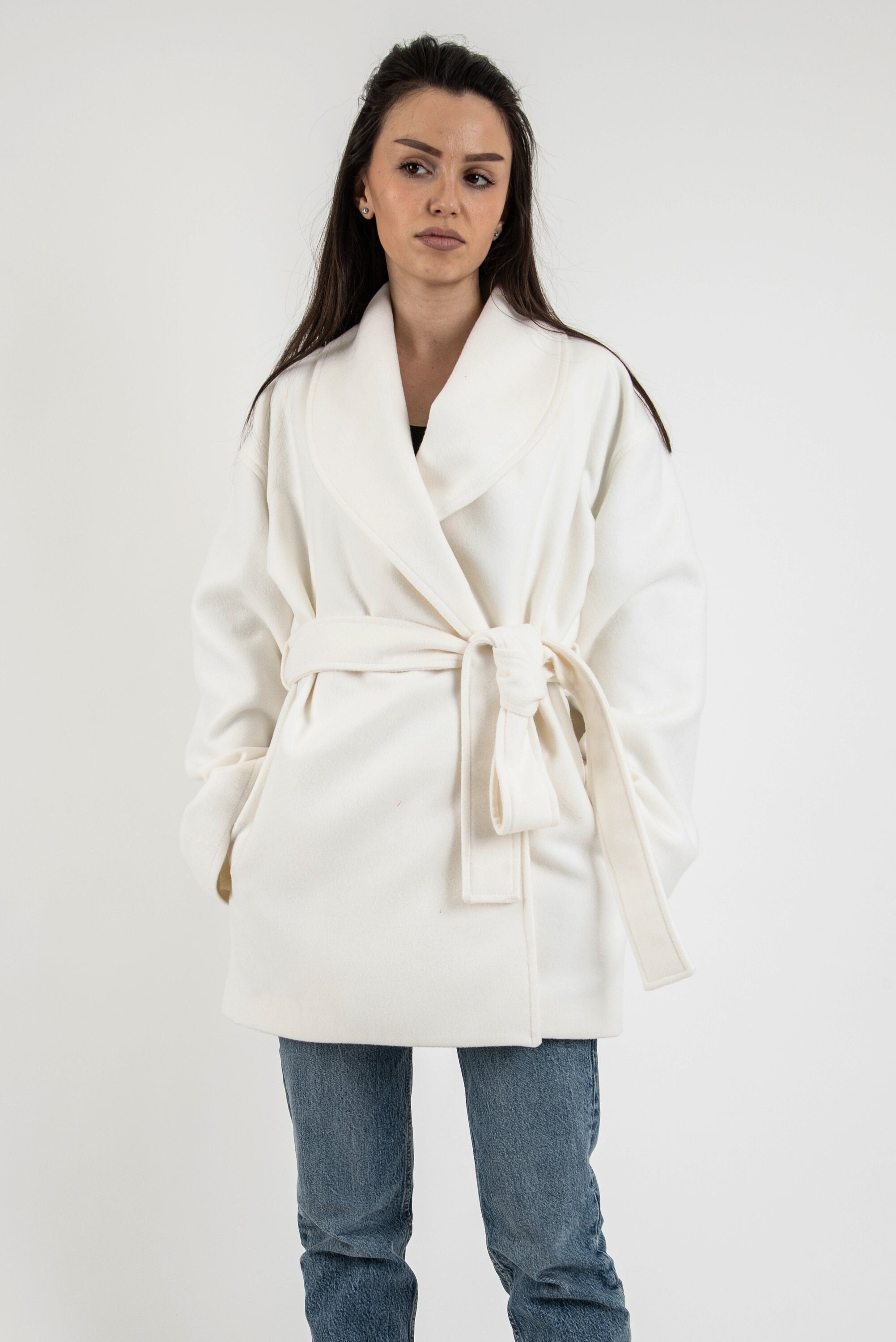 Oversized Coat/Warm Coat/White Lined Coat/Cashmere Wool Coat/Winter...