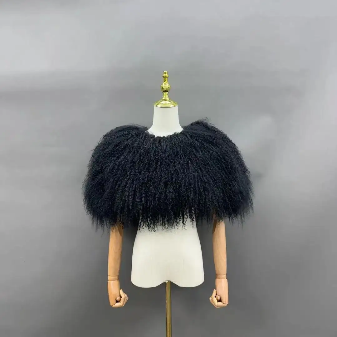 Short Mongolian Fur Coat Poncho For Woman Cropped Fur Jacket Luxury...
