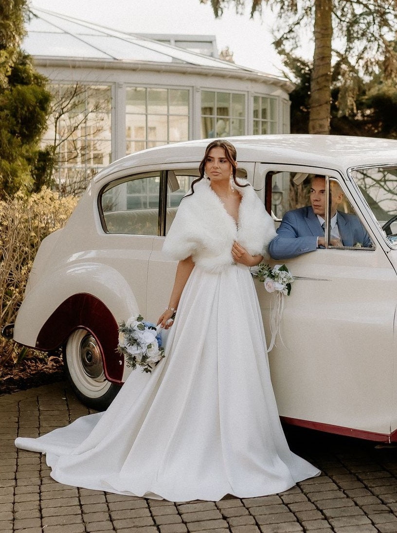 Premium faux fur bridal ivory coat, ivory Fur Jacket Bridal Fur Coa...