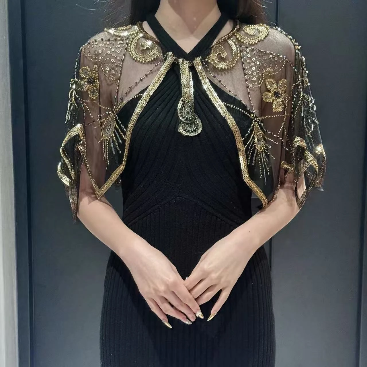 Vintage 1920s Flapper Shawl Sequin Beaded Short Cape New Heavy Handmade Sequin Short Cape Versatile ...