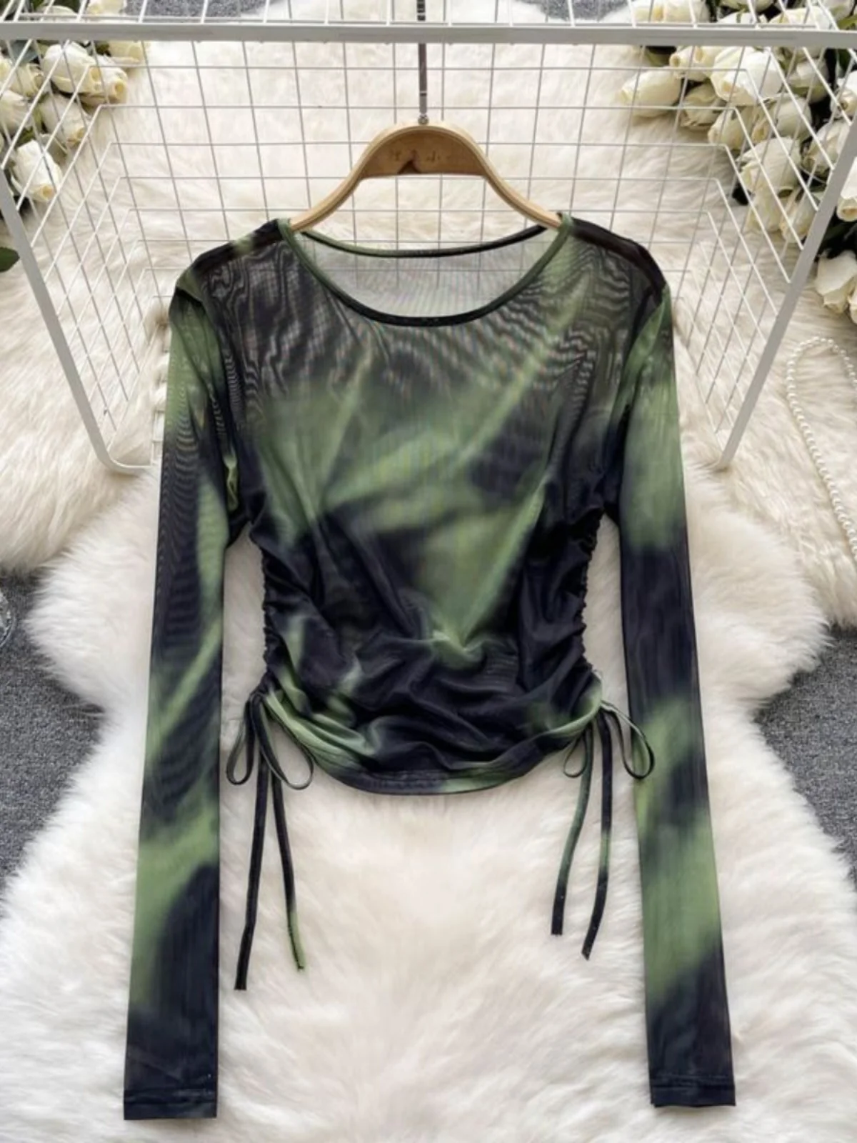 Retro Tie Dye Me Rope round Ne T irt Women's Clothing Cut Label Design Casual Slim Fit Long Sve Summ...