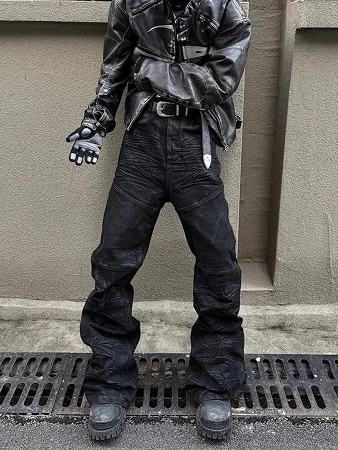 American Style Slim Fit Bootcut Men's Jeans Micro Flared Tapered Floor-Length Coated Denim Pants Cas...