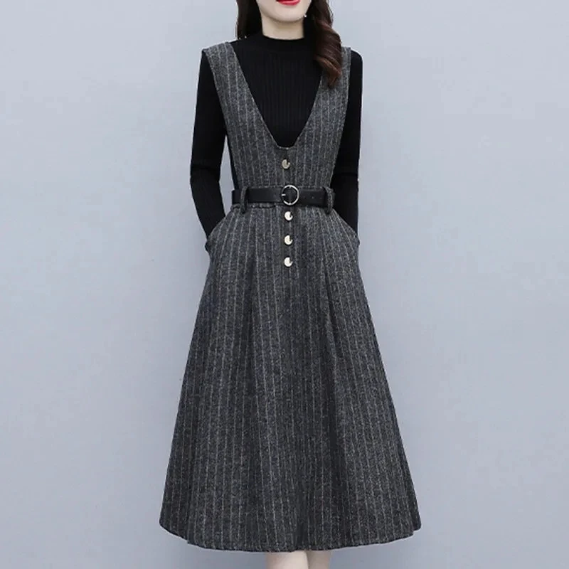 2023 New Autumn Winter Women's Dresses New Stripe Sleeveless Vest S...