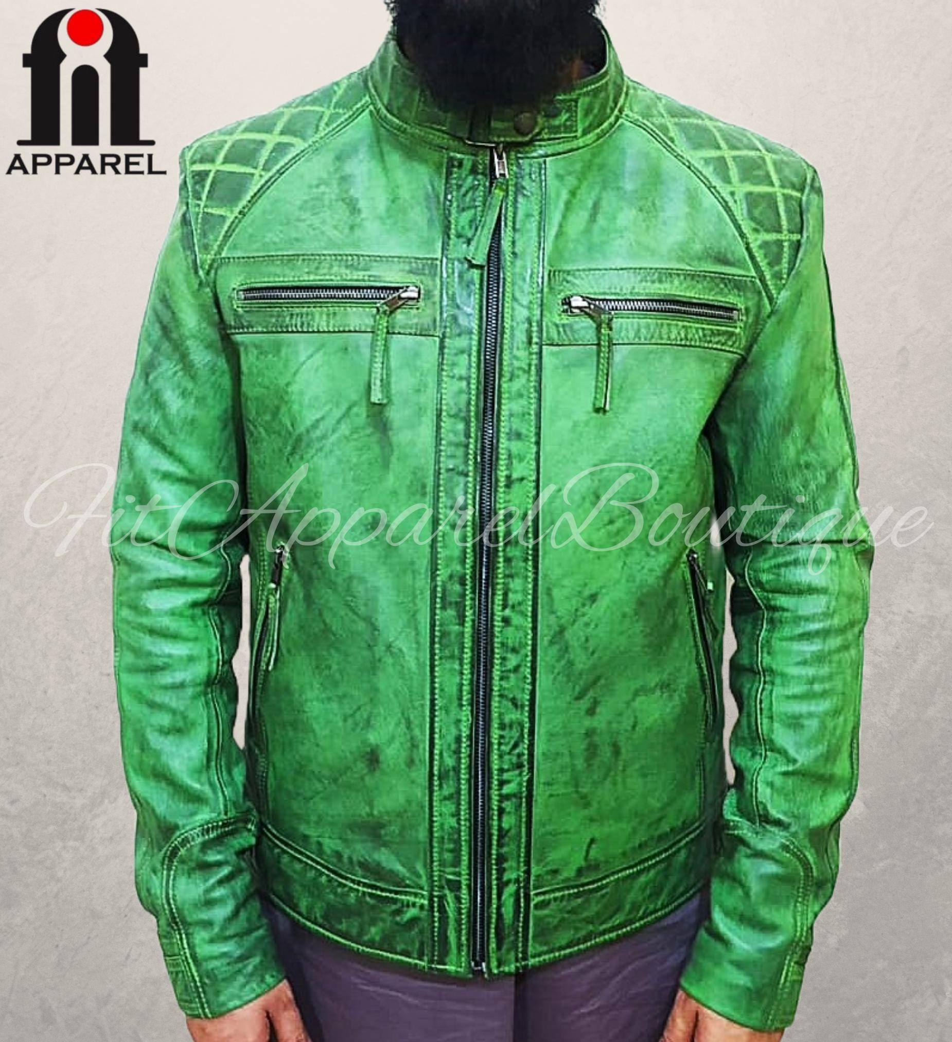 Men's Green Leather Jacket | Handmade Genuine Sheepskin Jacket | Le...