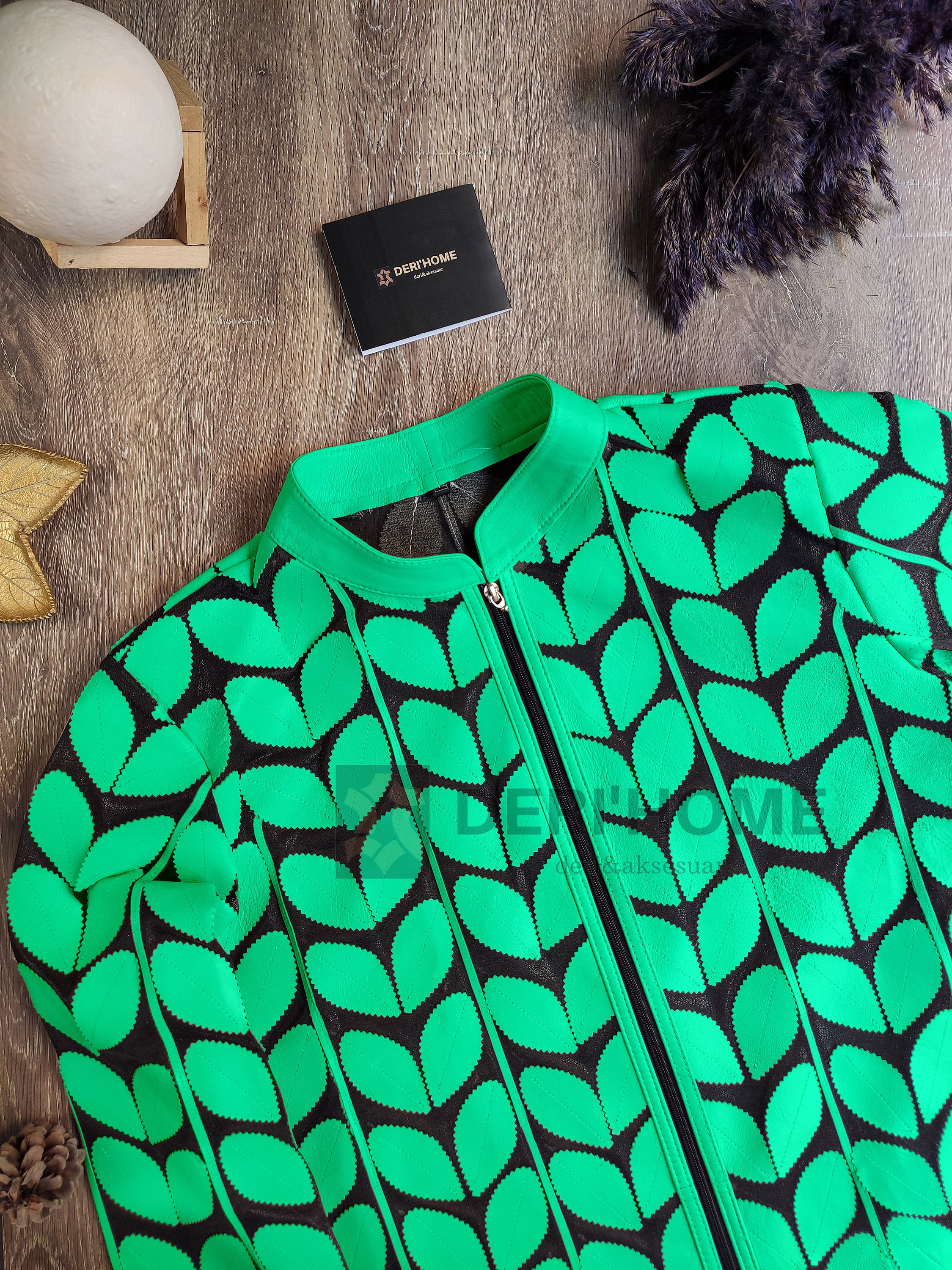 Green Leather Leaf Jacket Women, Leaf Shirt, Beach Jacket, Party Ja...