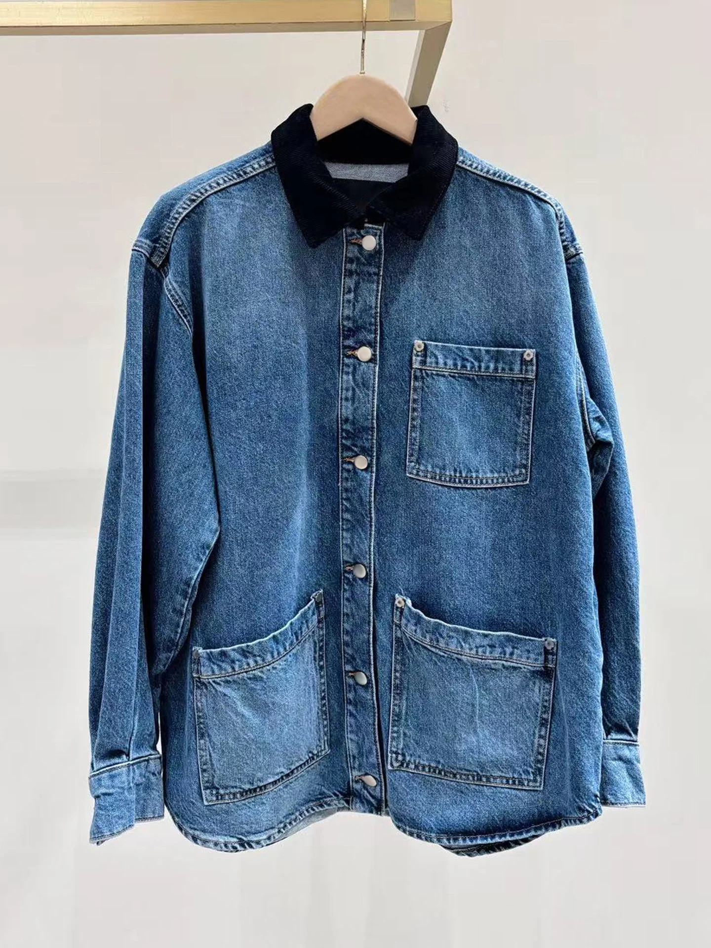 M Home Southern Oil High End Women's Fashion Autumn Small Audience Design Washed Vintage Collar Deni...