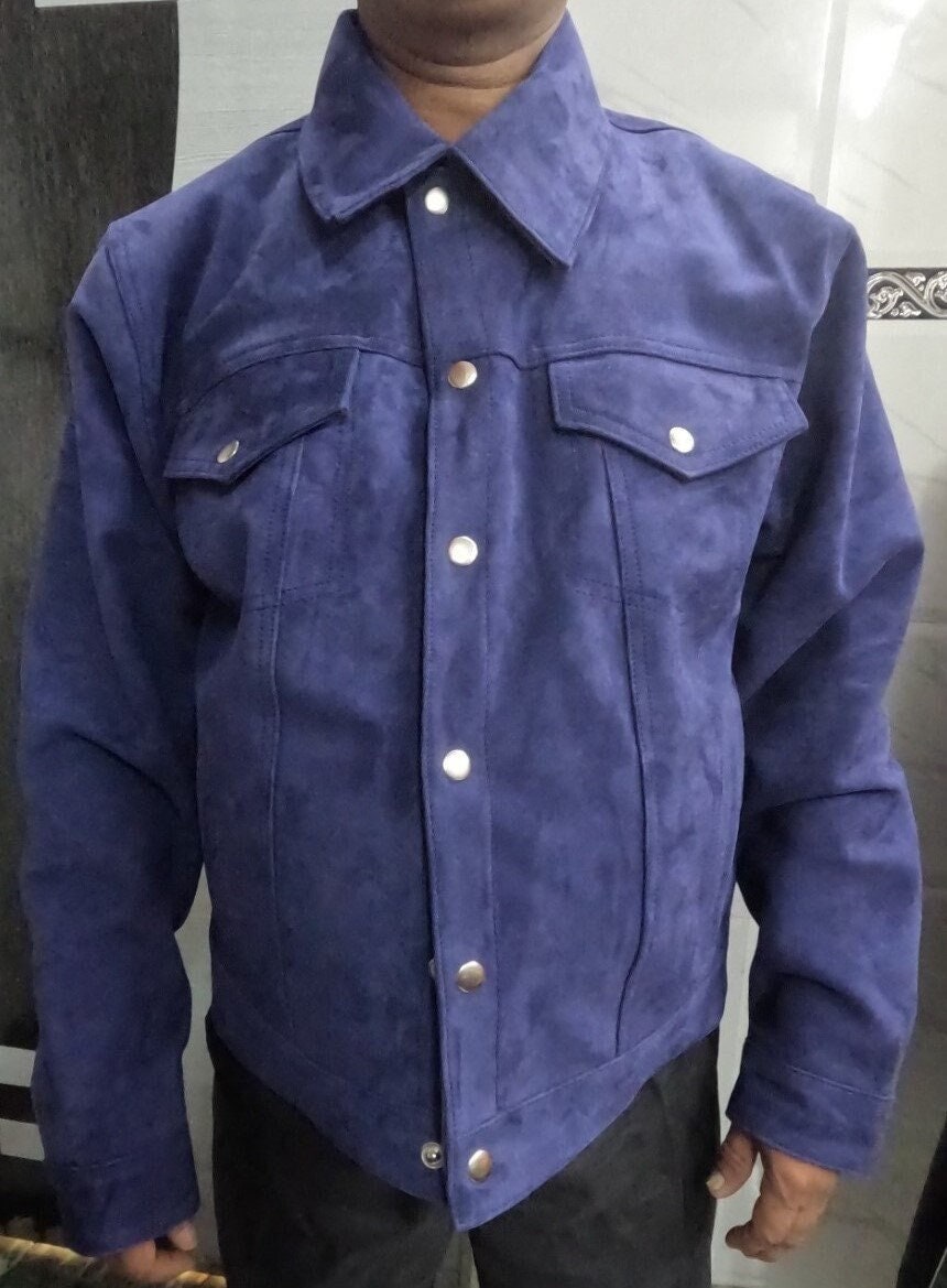 Noorani Mens BLUE Suede Shirt | Suede TRUCKER Jacket For Mens | Den...