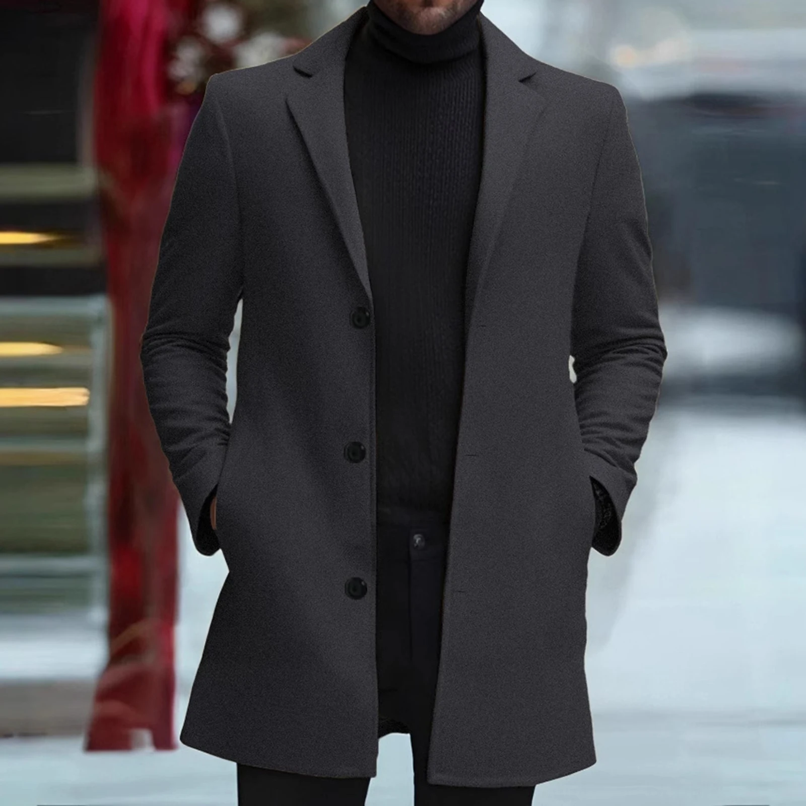 Men's Wool Pea Coat Solid Color Lapel Collar Single Breasted Jacket Warm Mid Length Winter Trench Co...