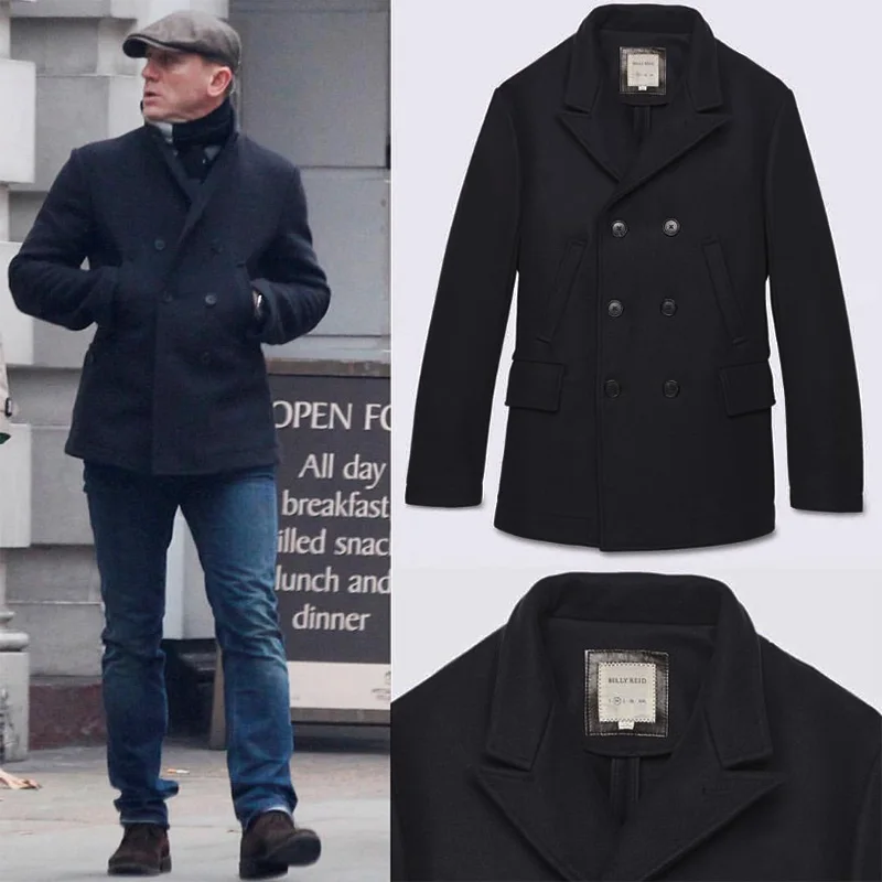 Dan Shu British Style Double Breasted Woolen Pea Coat Men's Thick Navy Coat Business Casual Winter O...