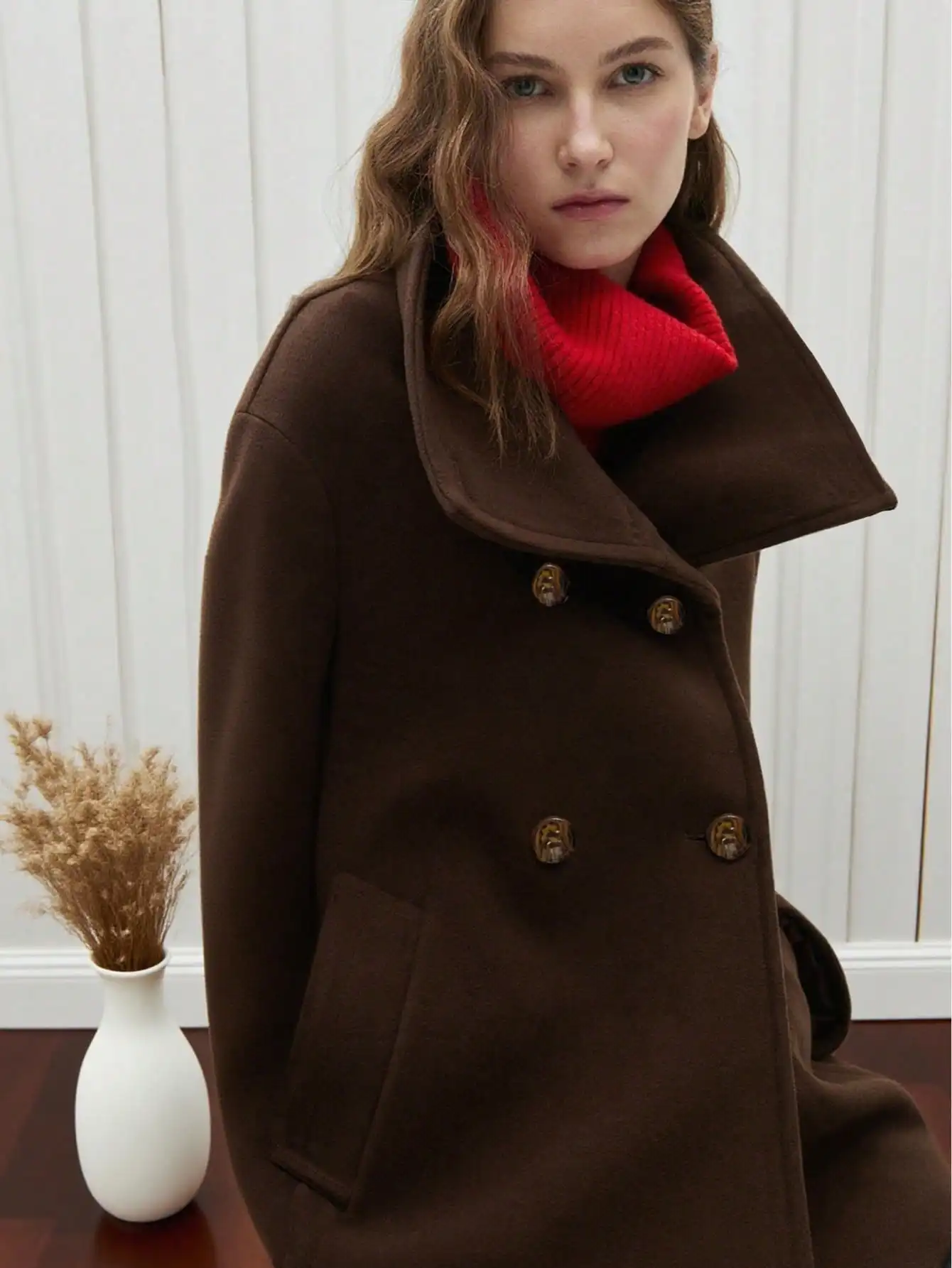 Neutral Brown Peacoat Double Breasted Mid Length Lapel Collar Versatile Casual Streetwear Coat women...