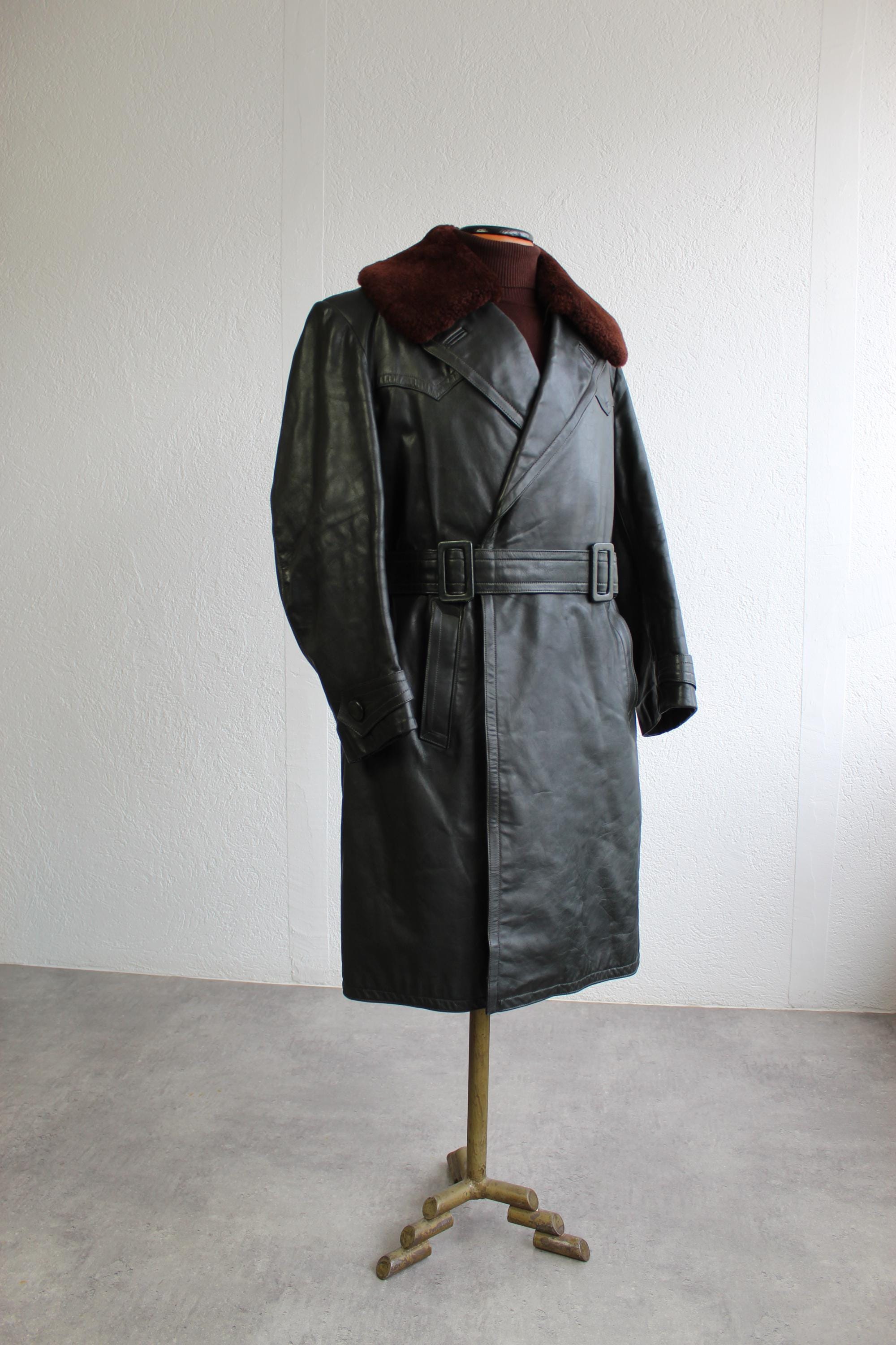 "Motorcycle Trenchcoat 50s Vintage Long Coat 1950s Moto Belt Jacket Dispatch Rider Coat Fur Col...