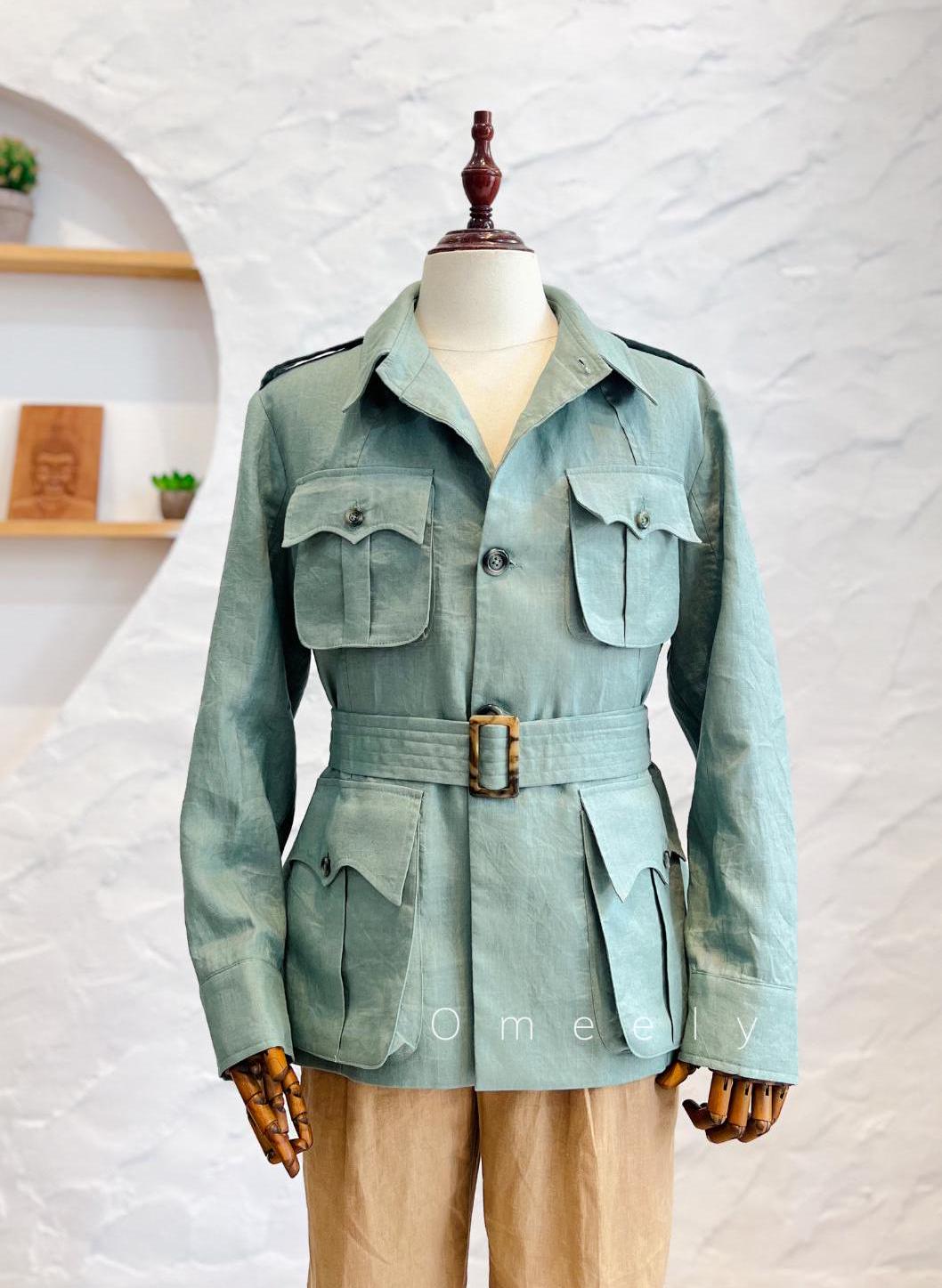 Unisex Linen Safari Jacket Men Sage Green Jacket Men With Belt Fall...