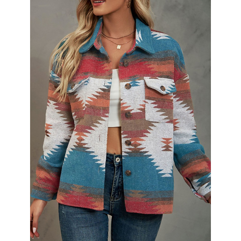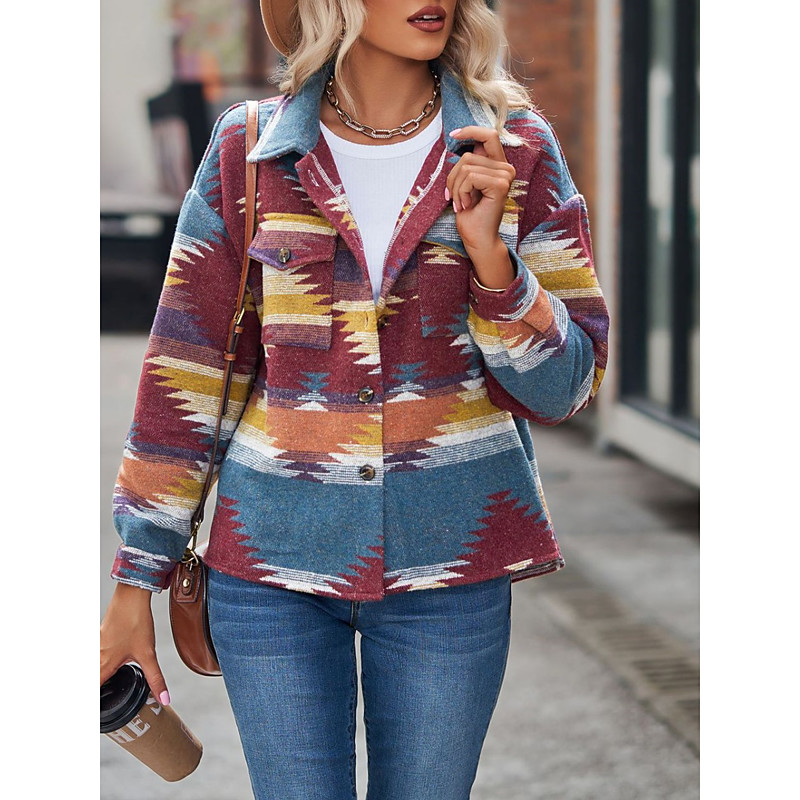 Women's Shirt Jacket Comfortable Patchwork Vintage Simple Classic C...