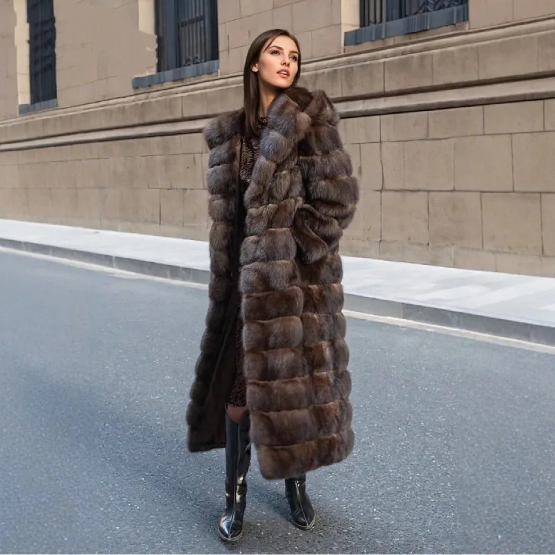 Mink Fur Coat New Style Autumn and Winter Hooded Mink Long Style Eco-friendly Faux Fur Winter Coat f...